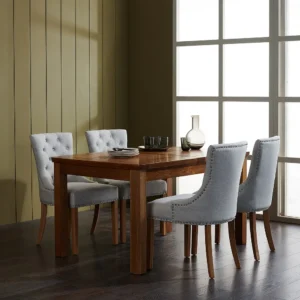 ORRICK 4ft 7″ Extending Dining Table with 4 Chairs Rustic Solid Oak