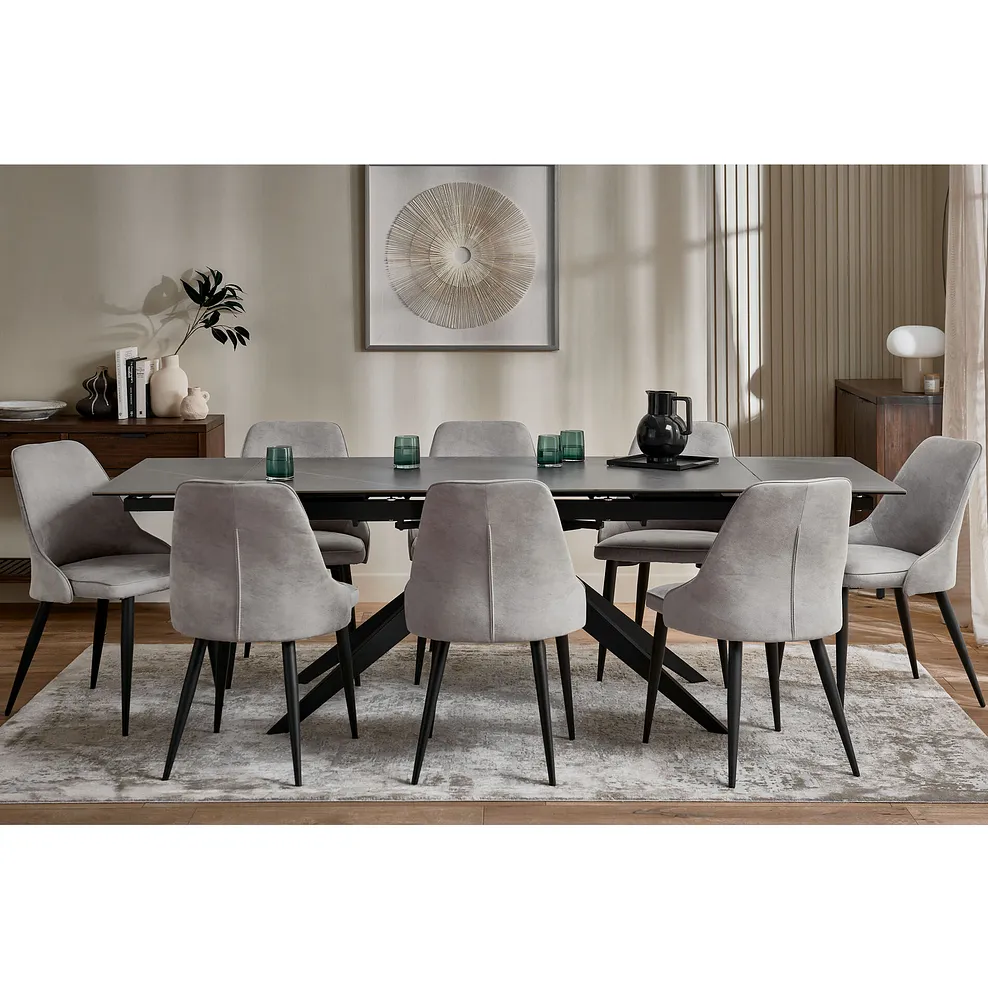 TRENTO Extending Dining Table with 8 Chairs Grey Ceramic