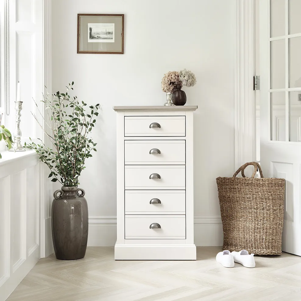 BROMPTON 5 Drawer Tallboy Painted Acacia & Ash Top