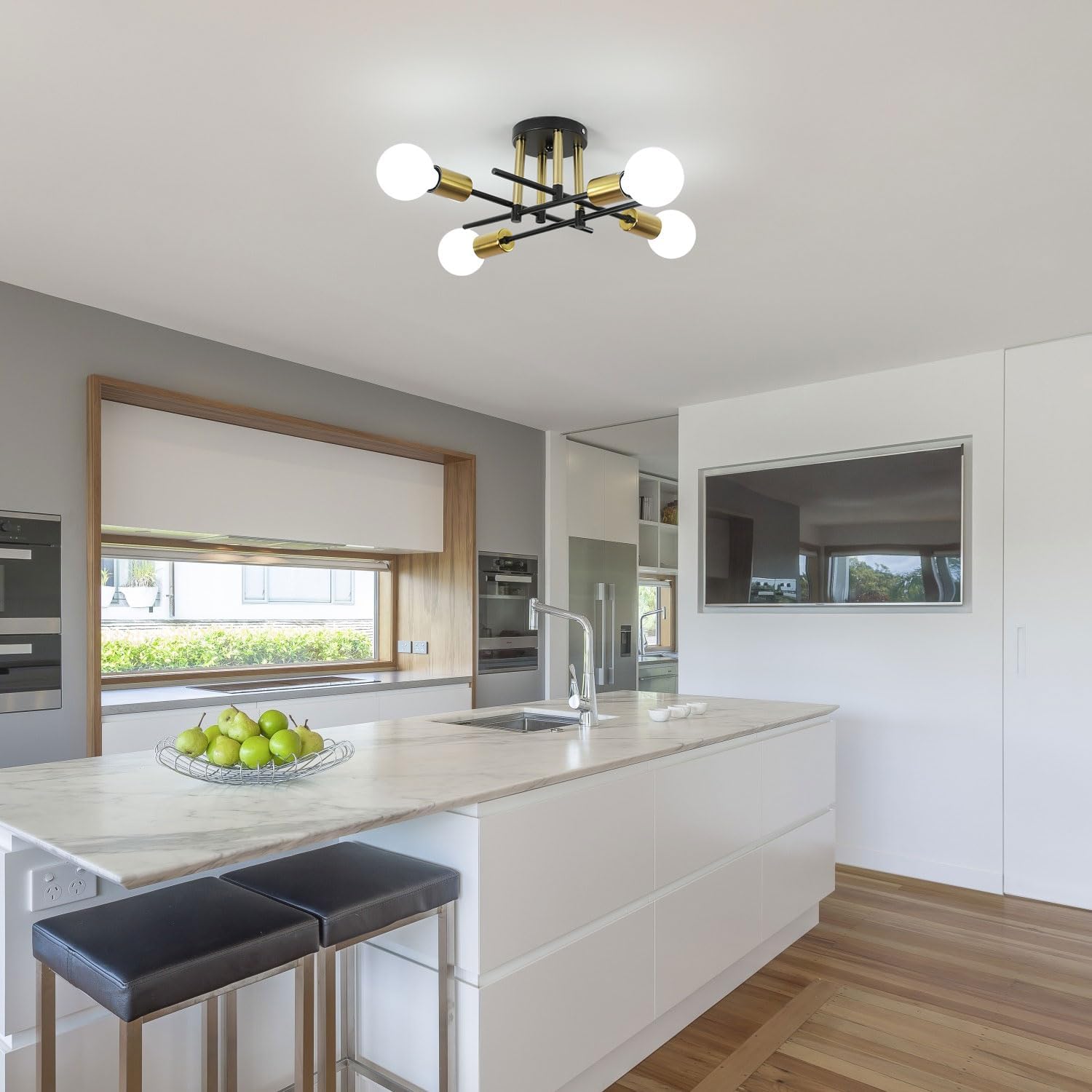 Specification: Lamp Material: Metal Power: 60W per bulb (max) The total power of 4 lamps does not exceed 200W Voltage: 110V-240V Color: Black and Gold Light Source: E27 Number of Bulbs: 4 Applicable Bulbs: LED, Edison, CFL Bulbs Included: Bulbs not included Applicable Space: 10-25 m² Application: living room, cafe, dining room, hallway, light bar |