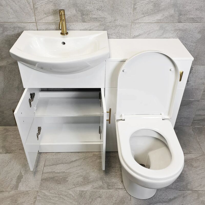White 1050mm Bathroom Vanity Suite Sink Toilet Unit With Gold Brushed Brass Handles