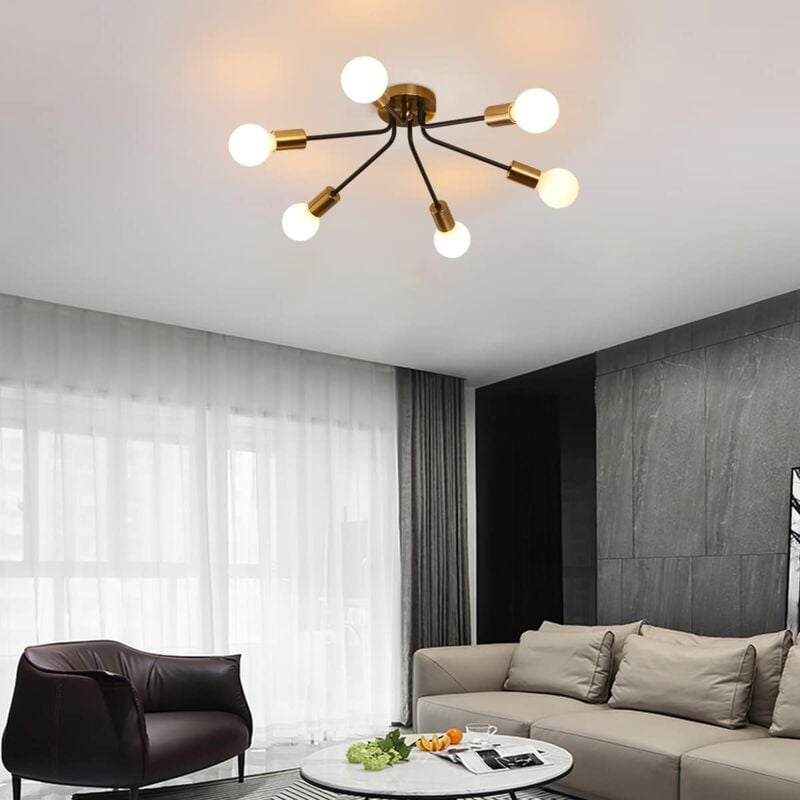 Ganeed Industrial Spunik Metal Living Room Ceiling Light Fixture with 6 light arms