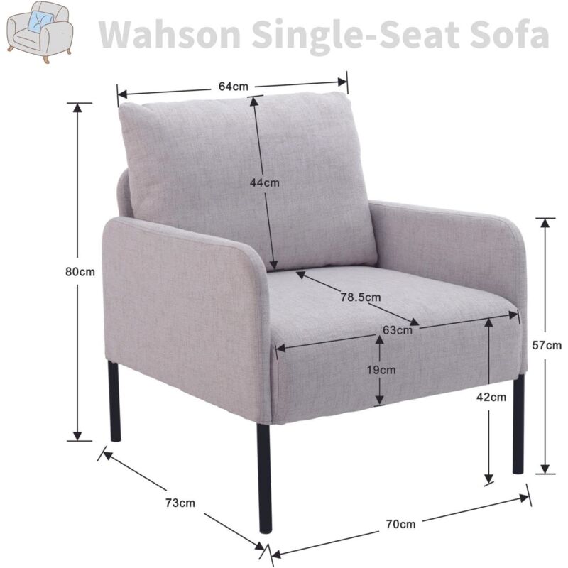 The Wahson Linen Single Sofa features a modern design with soft linen upholstery and thick foam cushioning, providing a comfortable resting spot that enhances any space. Its compact size makes it ideal for smaller areas such as apartments, living rooms, bedrooms, condos, or offices.