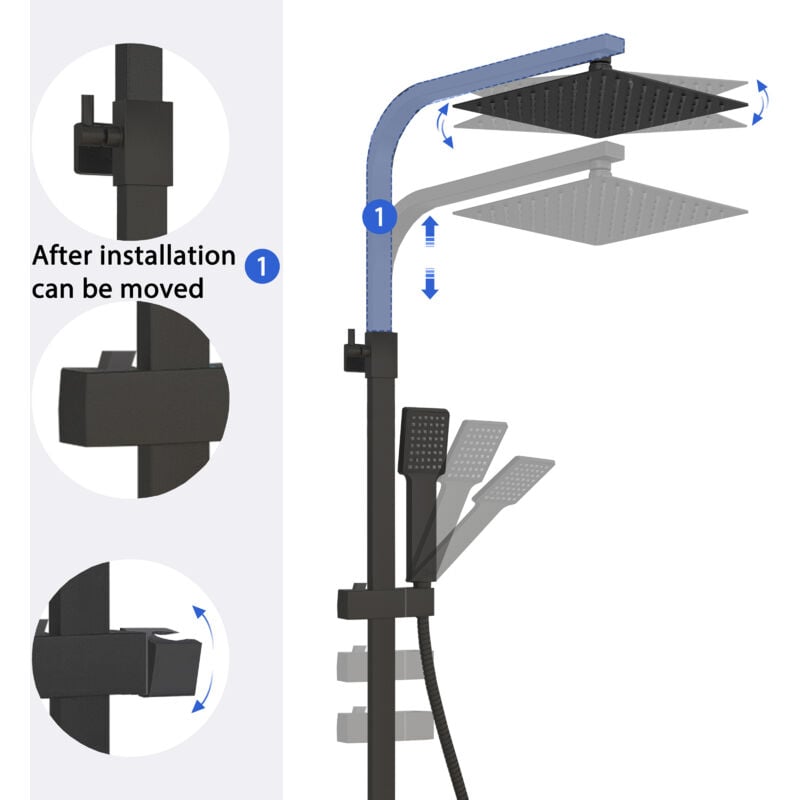 - Shower Top to Bottom Adjustability: 732mm – 1152mm