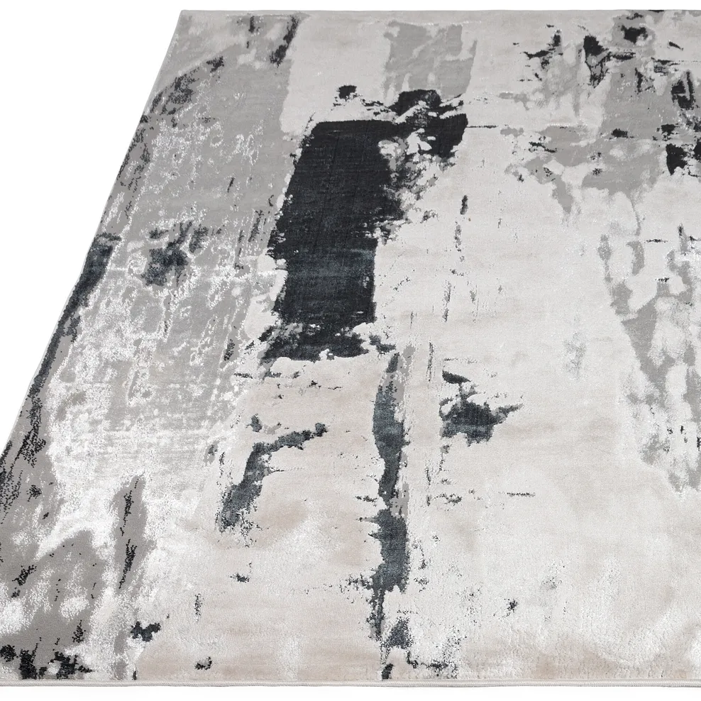 Modern monochrome design at its finest, our Alaska rug features an abstract metallic print that enhances the black, cream, white and grey palette. Add to any room for an instant injection of luxe decor.