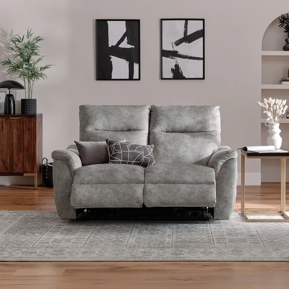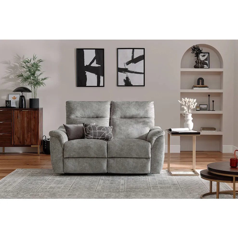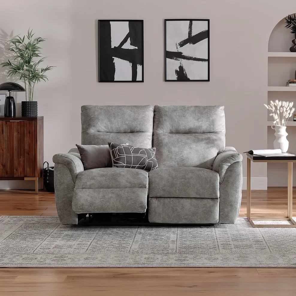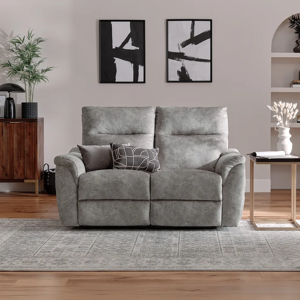 Ideal for cosy spaces, create a relaxing haven with the Aldo 2-seater recliner sofa. Upholstered in a suede-look marbled effect fabric and featuring a soft, neutral silhouette, Aldo is an easy-to-match living room addition.