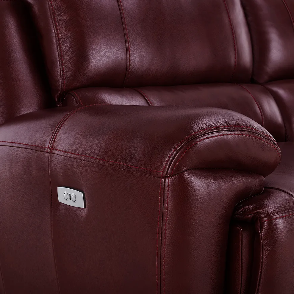 Our Austin electric recliner 2-seater sofa is upholstered in 100% leather that’s durable yet soft to touch, with a choice of nine colours to match with your home.