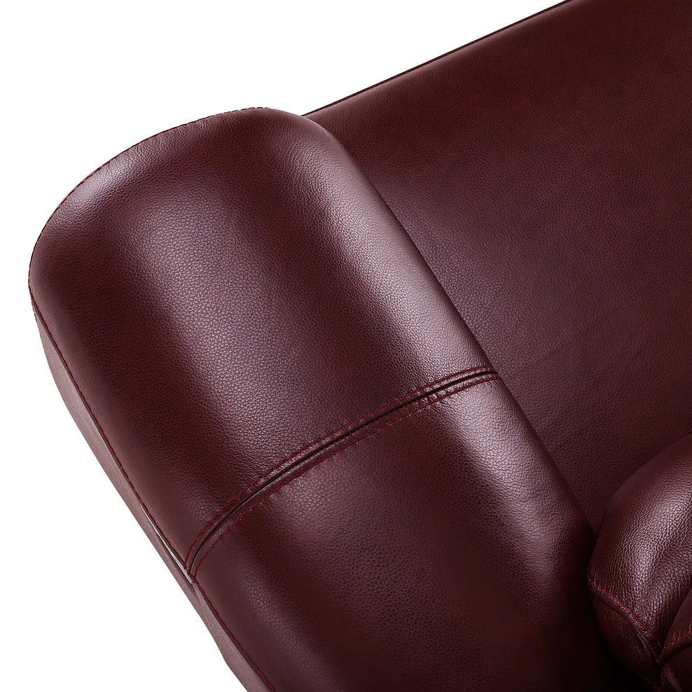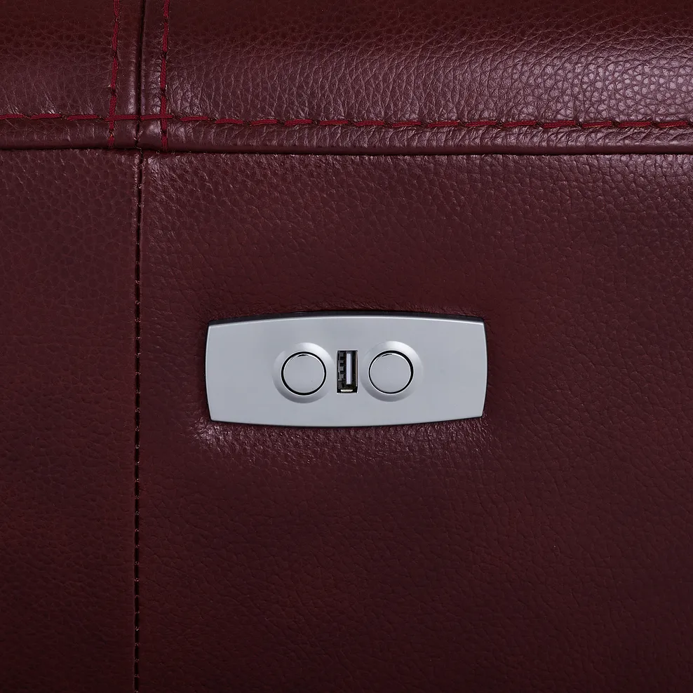 Combining traditional looks with modern comfort, our Austin sofa collection features wide arms, and a high back with fixed cushions that make it perfect for lounging. The electric recliner 2-seater sofa, shown here in burgundy, offers relaxation at the touch of a button, with the power headrest adding extra support. It also benefits from a handy in-built USB port. The armchair is upholstered all over in 100% leather and comes in a choice of stylish colours that pair beautifully with any interiors.