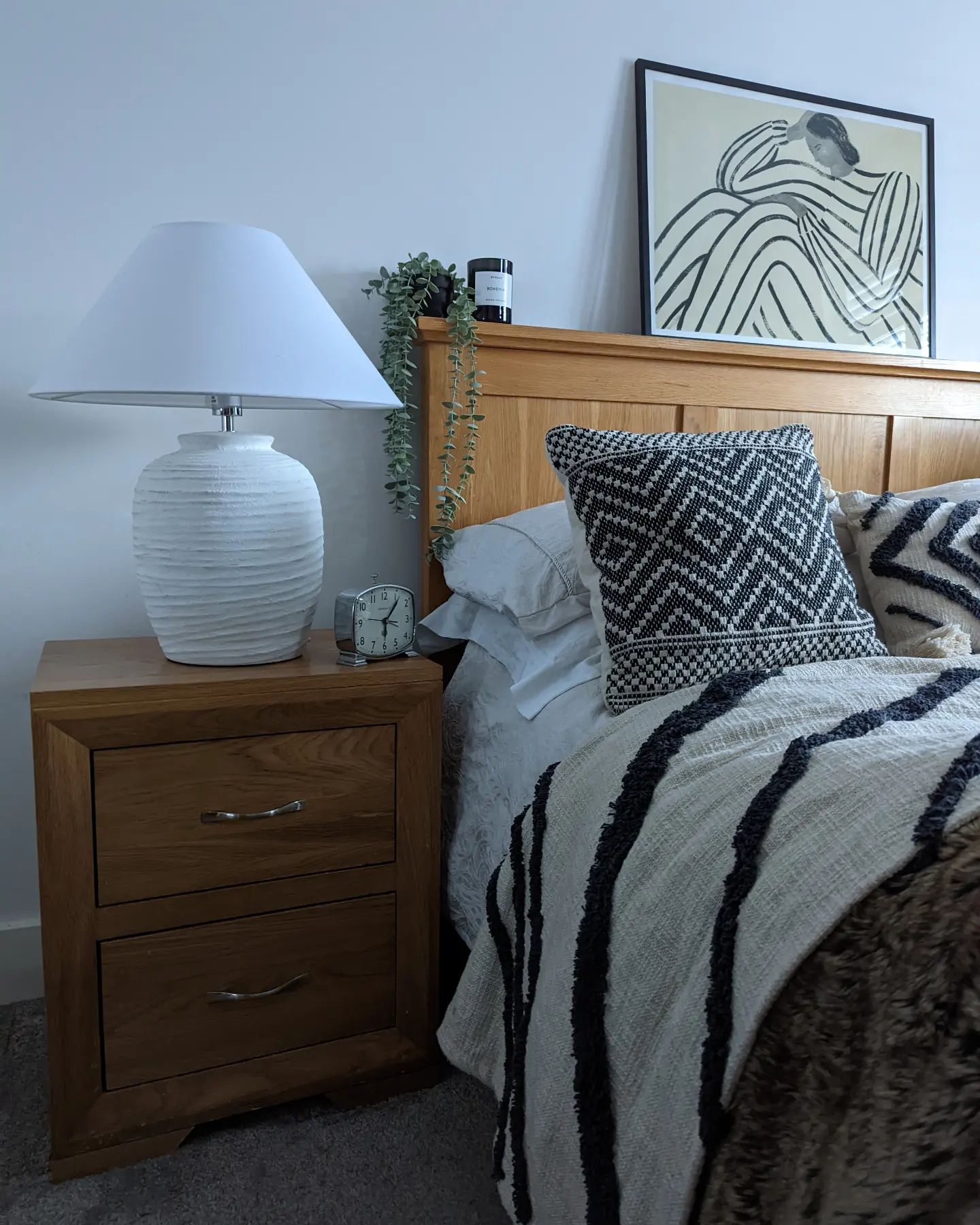 The Bevel Natural Solid Oak Two Drawer Bedside Cabinet is designed to be the ideal companion for the Bevel Solid Oak Bed, however its contemporary design allows it to complement almost any of our natural oak beds. Featuring two generously-sized brushed metal handled drawers, it offers ample storage space for all manner of items.