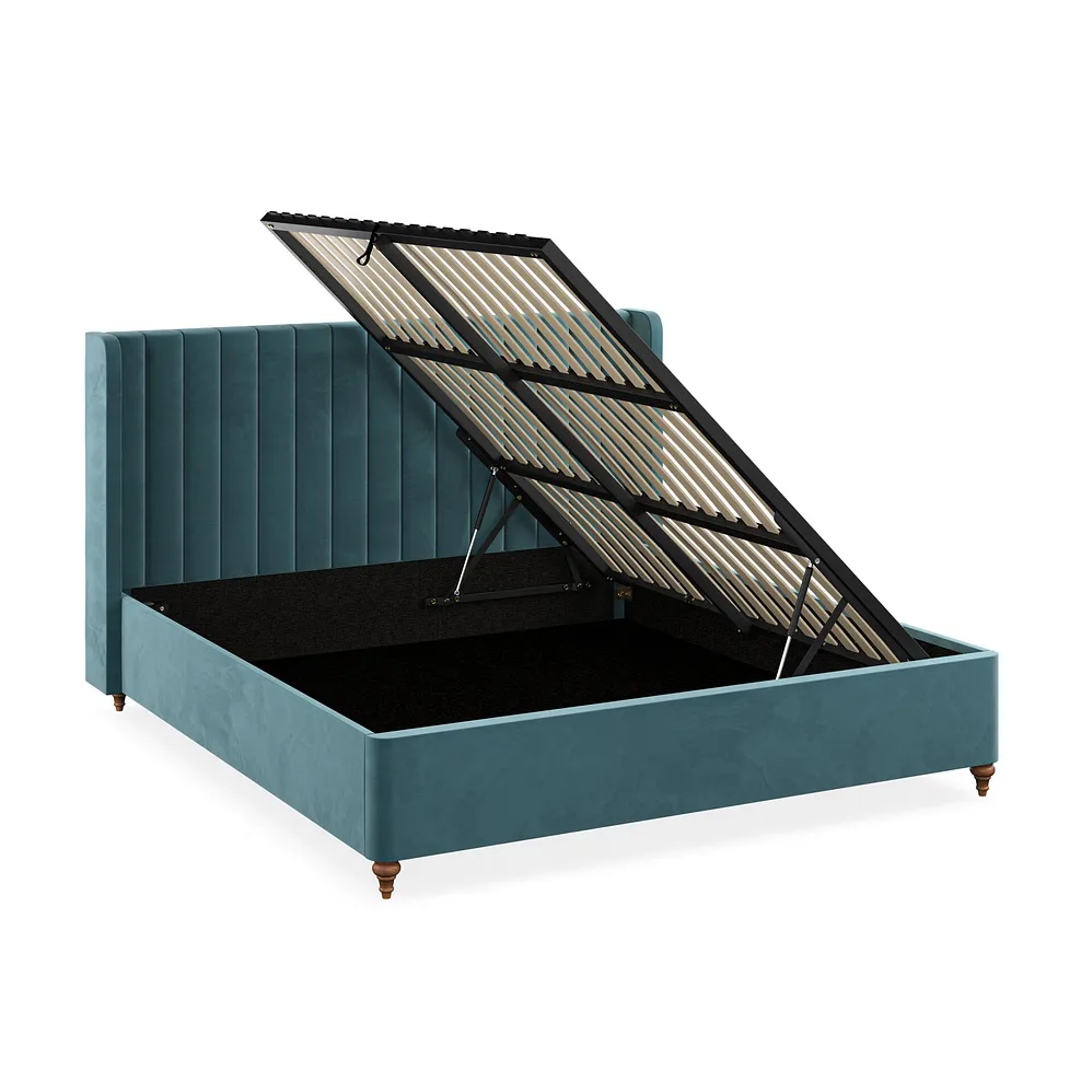 Create a beautiful bedroom statement with our Bloomsbury winged upholstered super king-size bed. The stunning velvet ottoman is available in teal or granite colourways, offering a rich and opulent finish that perfectly complements the fluted, winged headboard and discreet mid-oak feet.