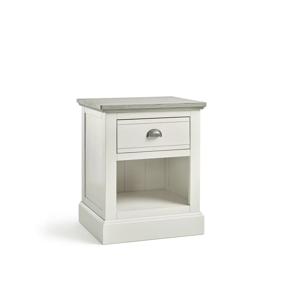 The Brompton 1-drawer bedside table brings together classic Shaker-style furniture and modern functionality to offer a piece that works perfectly for contemporary homes. A must-have for bedrooms, this compact unit is the ultimate bedside companion, with space to display a lamp and useful drawer and shelf storage. The gunmetal cup handle adds a contrasting finishing touch.
