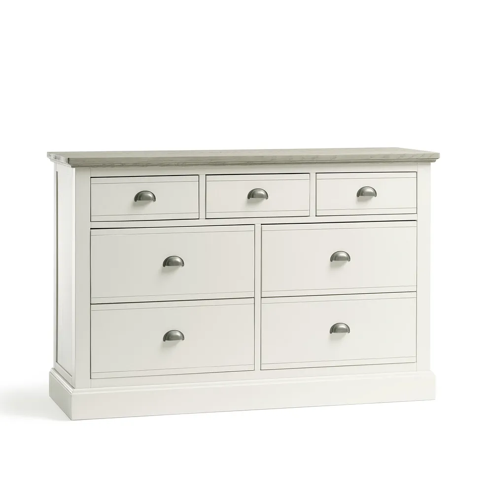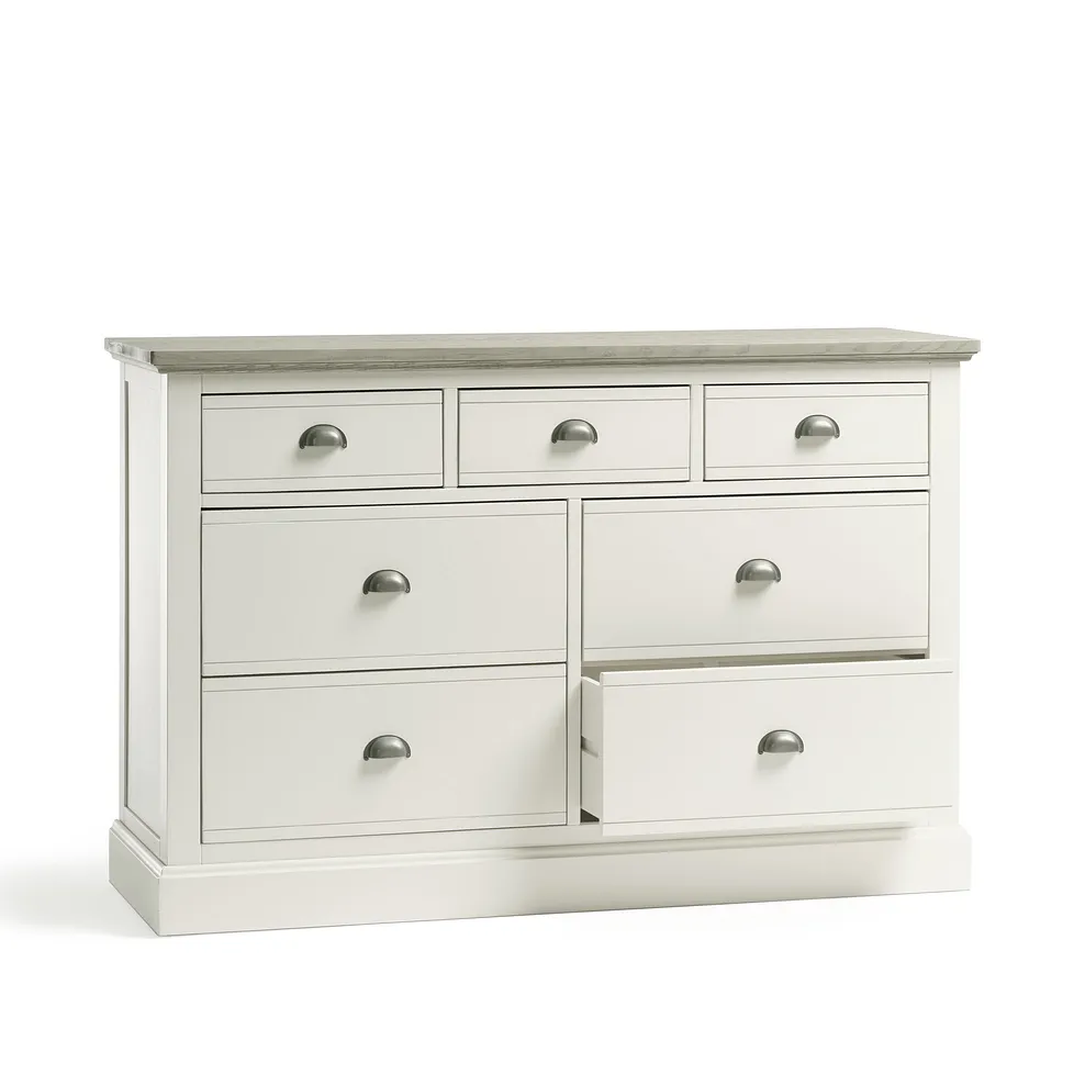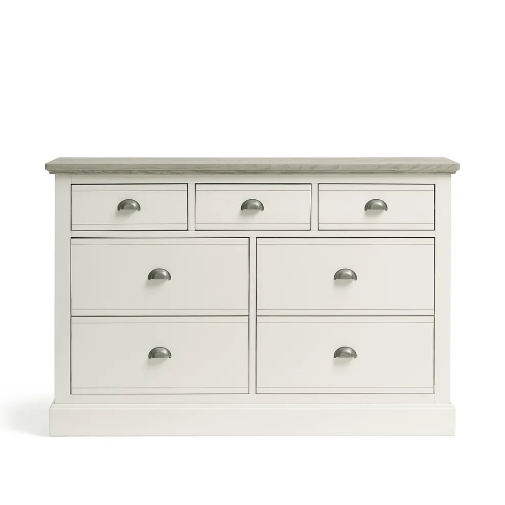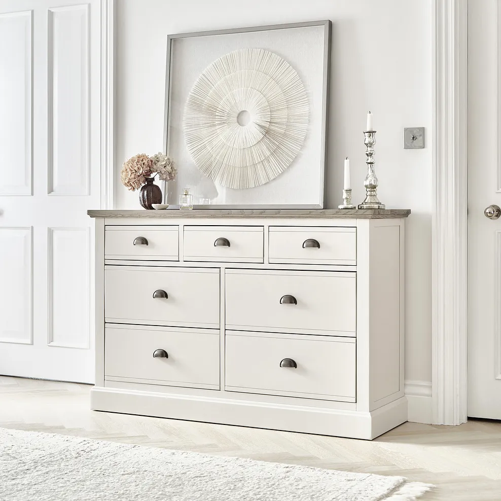 The 7-drawer chest matches beautifully with other pieces in the Brompton range, offering a complete look that brings country-inspired decor to life.