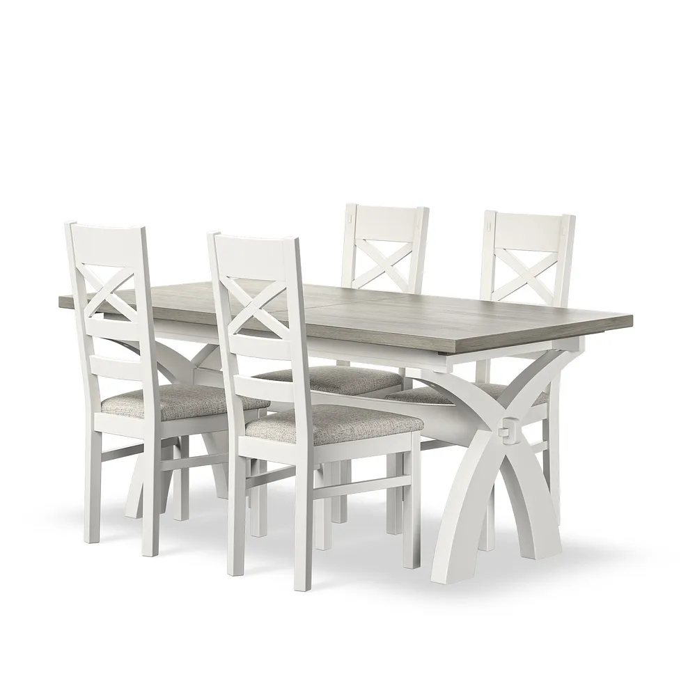 BROMPTON Extending Dining Table with 4 Chairs Painted Acacia & Ash Top