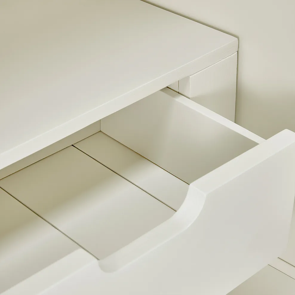 Inside, generous shelving keeps essentials neatly organised, with handy storage racks built into the doors for jars, bottles, and condiments. Below, two spacious drawers provide extra room for linens, utensils, or dry goods, making it easy to keep your kitchen clutter-free.