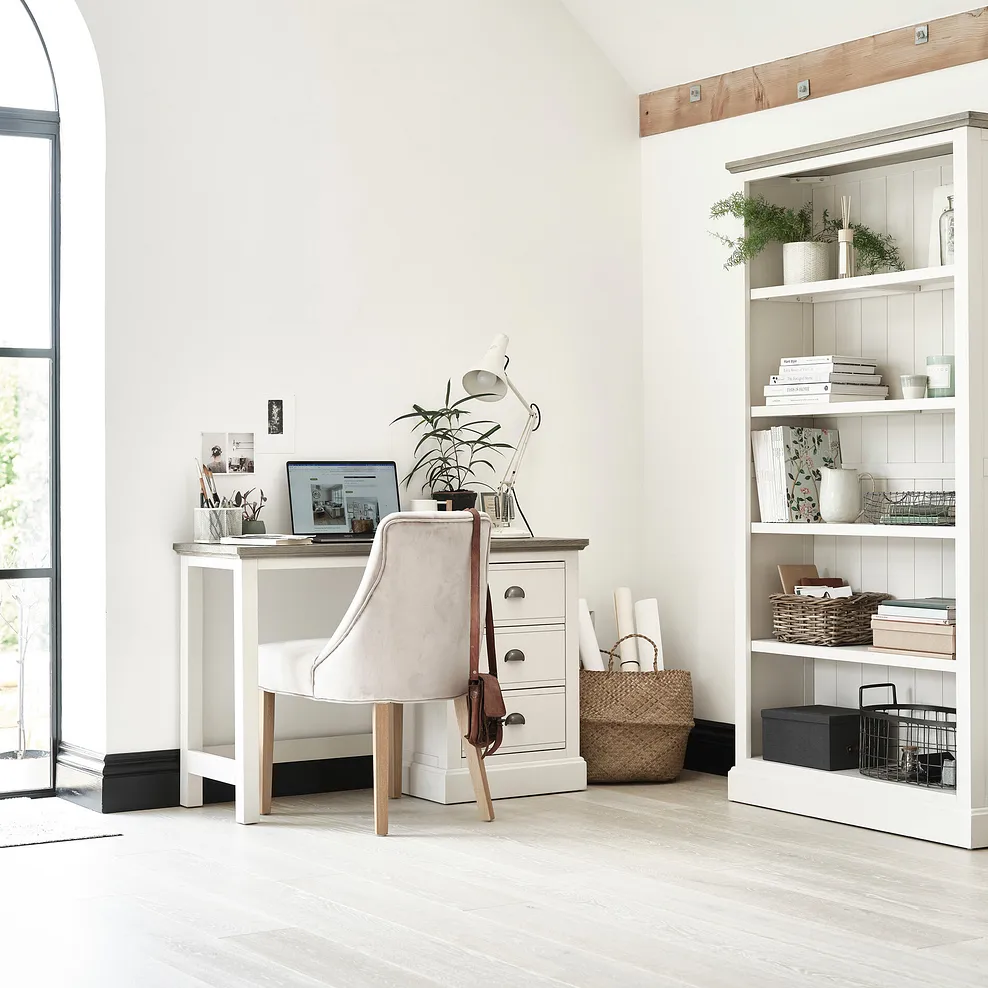 The tall bookcase matches beautifully with other pieces in the Brompton range, offering a complete look that brings country-inspired decor to life.
