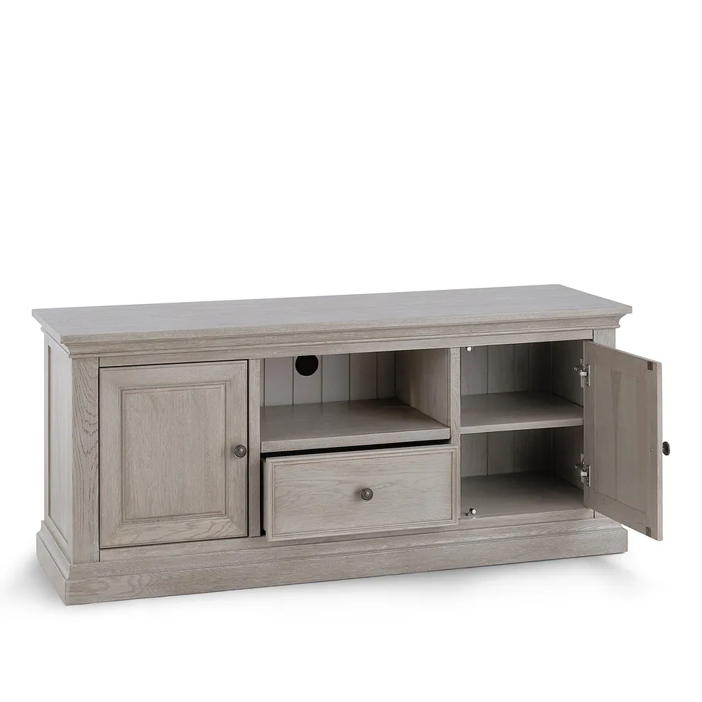 Comprising two soft-close cupboards and a soft-close drawer, as well as an open shelf that€™s ideal for media players and entertainment consoles, the Burleigh TV unit showcases modern elegance and will look at home in both traditional and contemporary schemes.