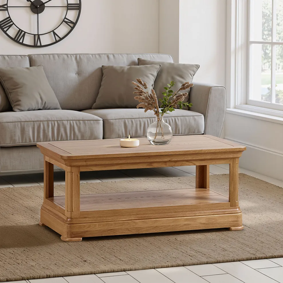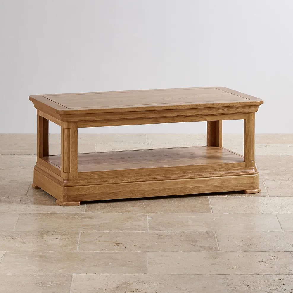 The Canterbury coffee table is a warm addition to your living room, made from stunning solid oak in a natural wax finish. It boasts high style, and excellent function, thanks to its high quality materials and clever construction.