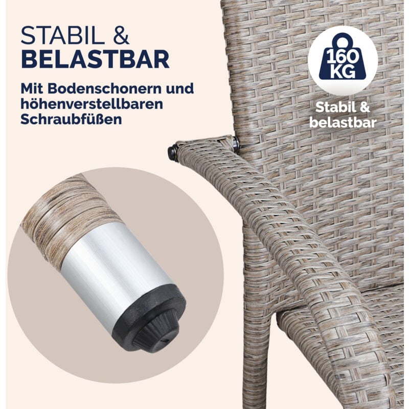Enjoy comfortable seating with the stylish and practical garden chairs from CASARIA®. These weatherproof and UV-resistant chairs feature an elegant design and functionality. The comfortable, rounded armrests invite relaxation, while the powder-coated steel frame ensures stability and durability. With a load capacity of 160kg, these robust chairs can be stacked for easy storage and are suitable for various seating arrangements. Floor protectors and height-adjustable screw feet provide stability on uneven surfaces. Available in sets of 4 or 8 and in cream, black, brown, and grey.