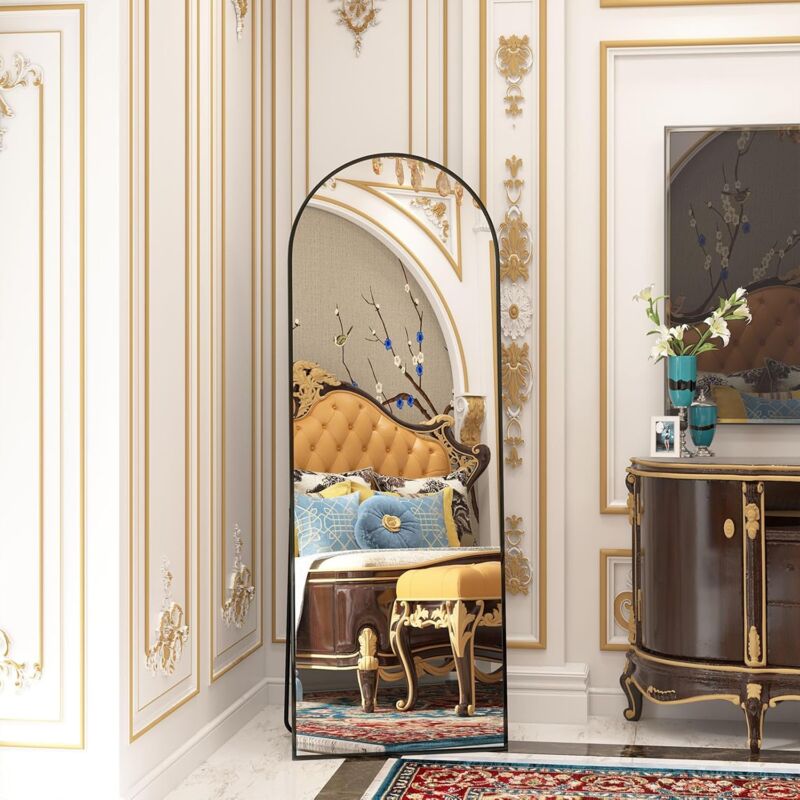: The top of the floor mirror adopts a unique smooth arched top frame design, which is particularly eye-catching and highlights the beauty of the mirror. The ultra-thin aluminum alloy metal bezel makes the mirror more fashionable. It is suitable for bathroom, bedroom, living room, dressing room, behind the door, hallway, clothing store or other places where mirrors may be needed.
