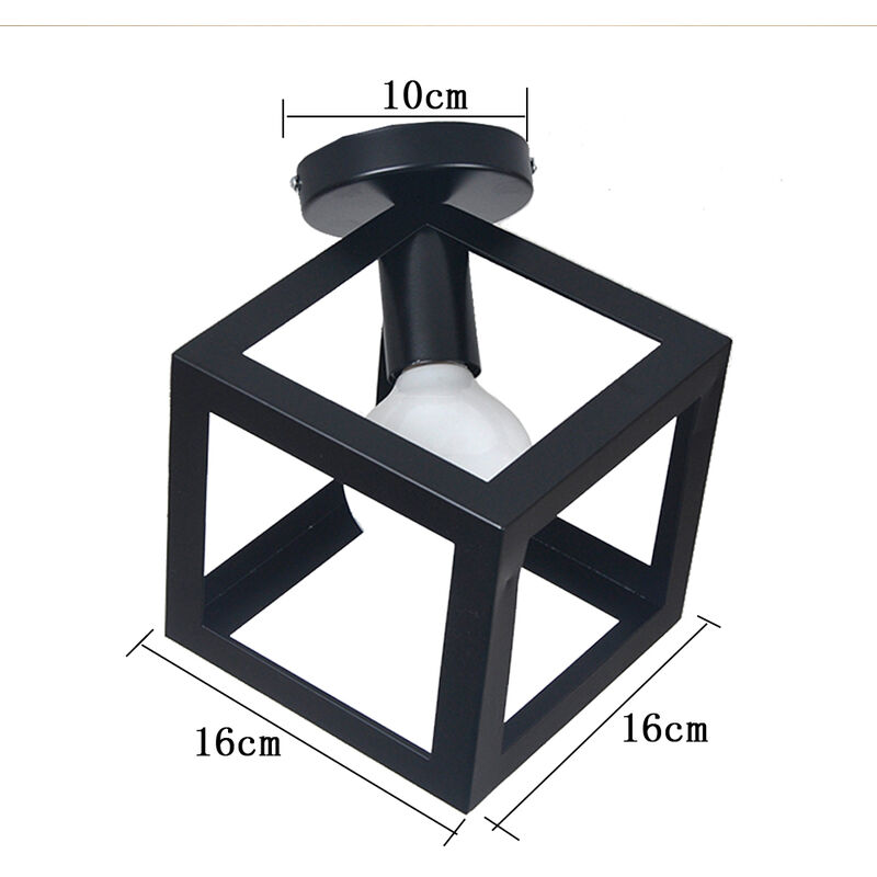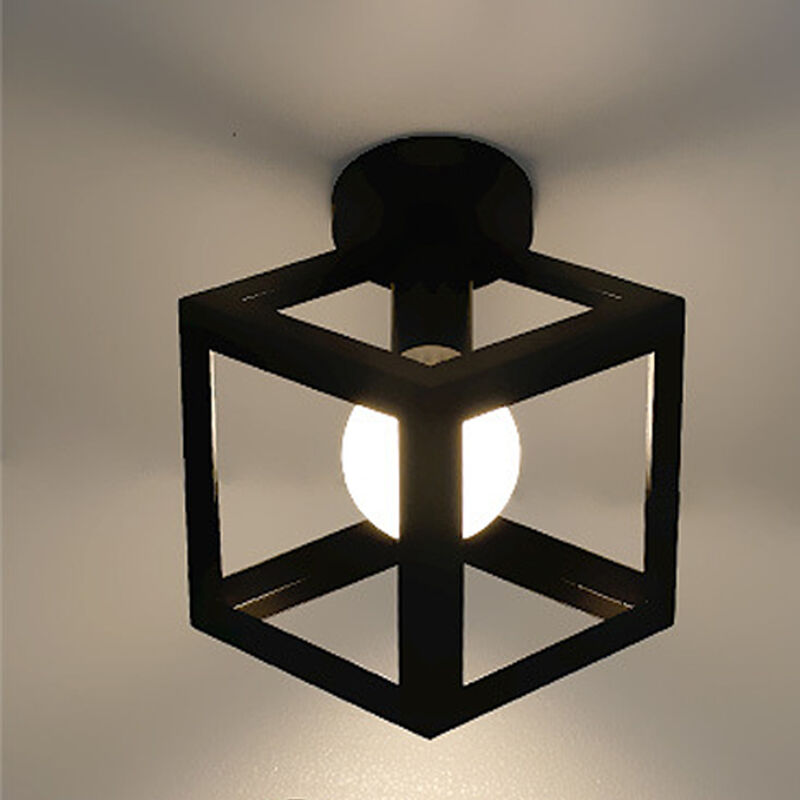 Ceiling Lighting Fitting Vintage, Cube Metal Ceiling Lamp, Industrial Geometric Chandelier with Lampshade for Living Room Hallway (Black)