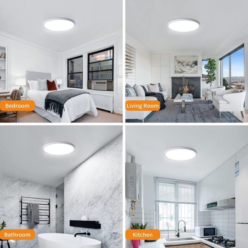 Energy Saving‘: With brightness equivalent to 2 100W incandescent bulbs, this 24W LED ceiling light allows you to save up to 90% electricity while providing powerful and uniform lighting.