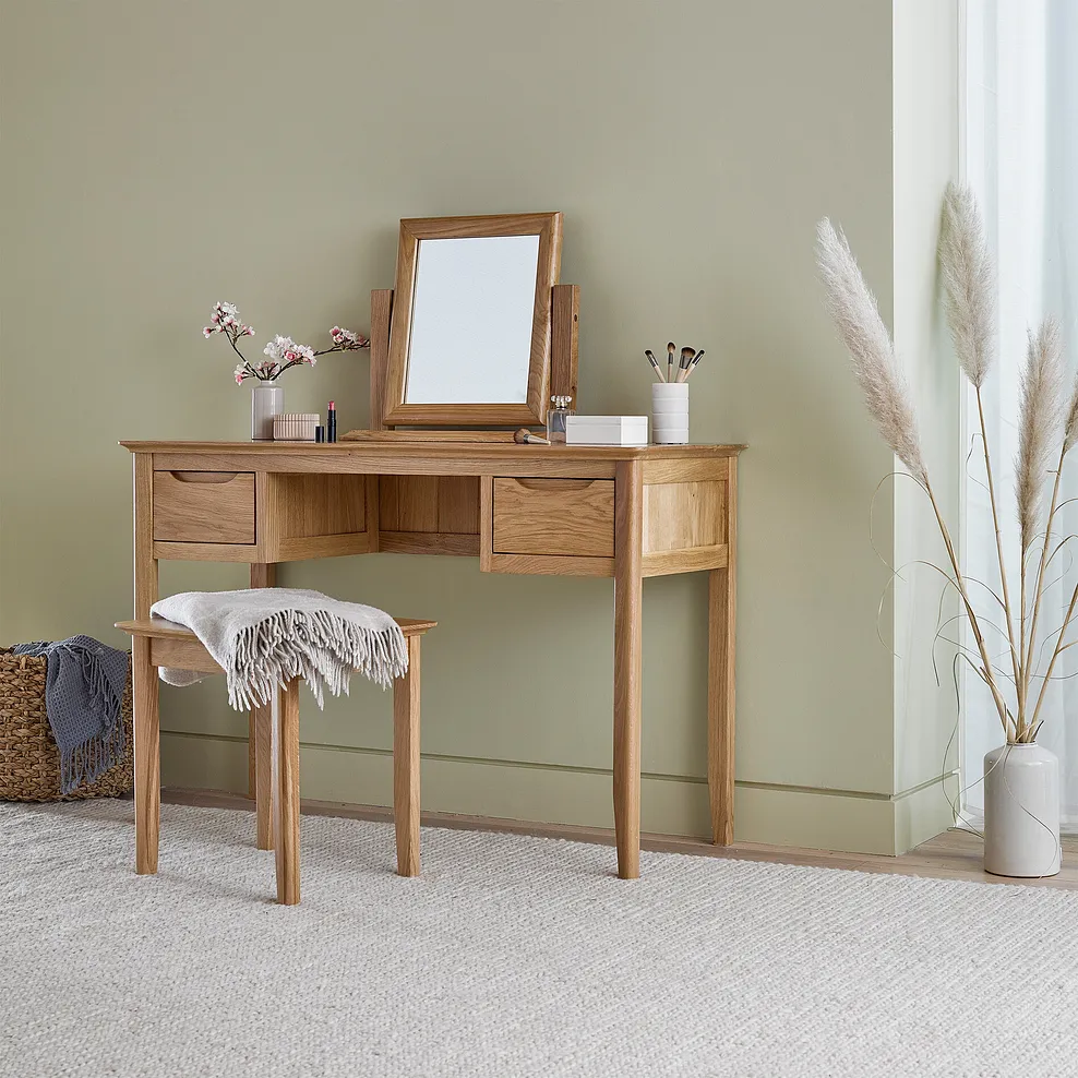 Get the day €“ or evening out €“ off to a good start. When everything’s to hand to get ready, and there’s a comfy place to sit, you’re bound to be more prepared. Our Copenhagen dressing table has a modern design with two drawers and tapered legs. The smooth top could be used for display, and for the matching tilting mirror that’s available. Browse, and be inspired by our Copenhagen range.