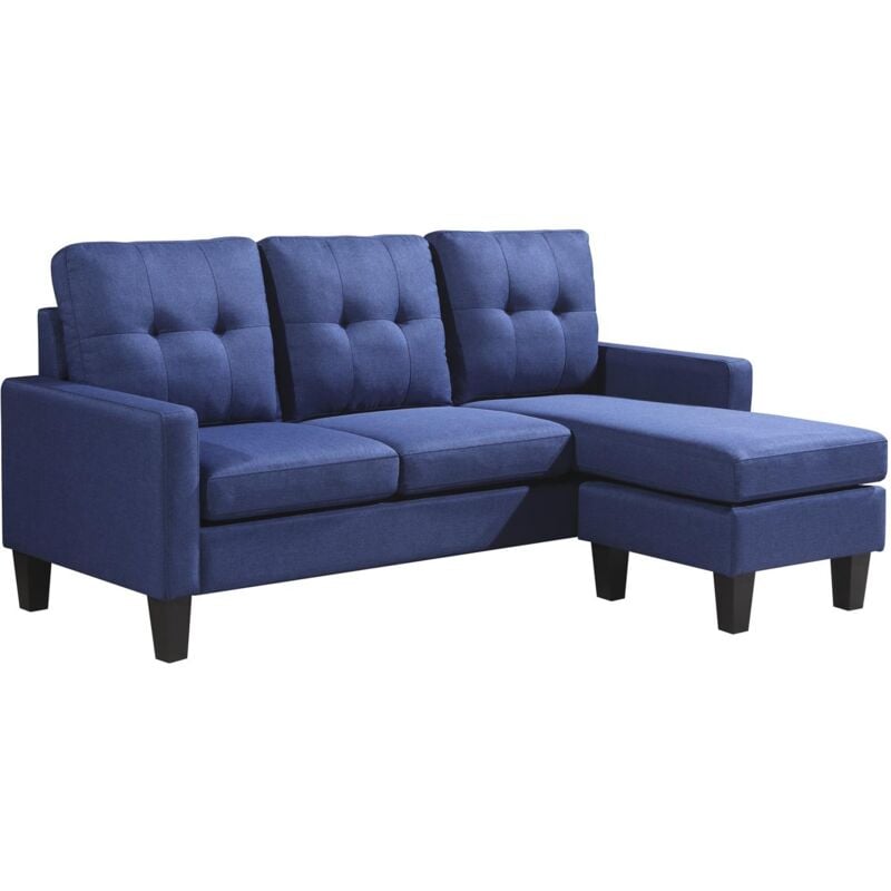 Corner Sofa Fabric Sectional Sofa with Ottoman L-shaped Blue Sofa Couch Reversible 3-Seater