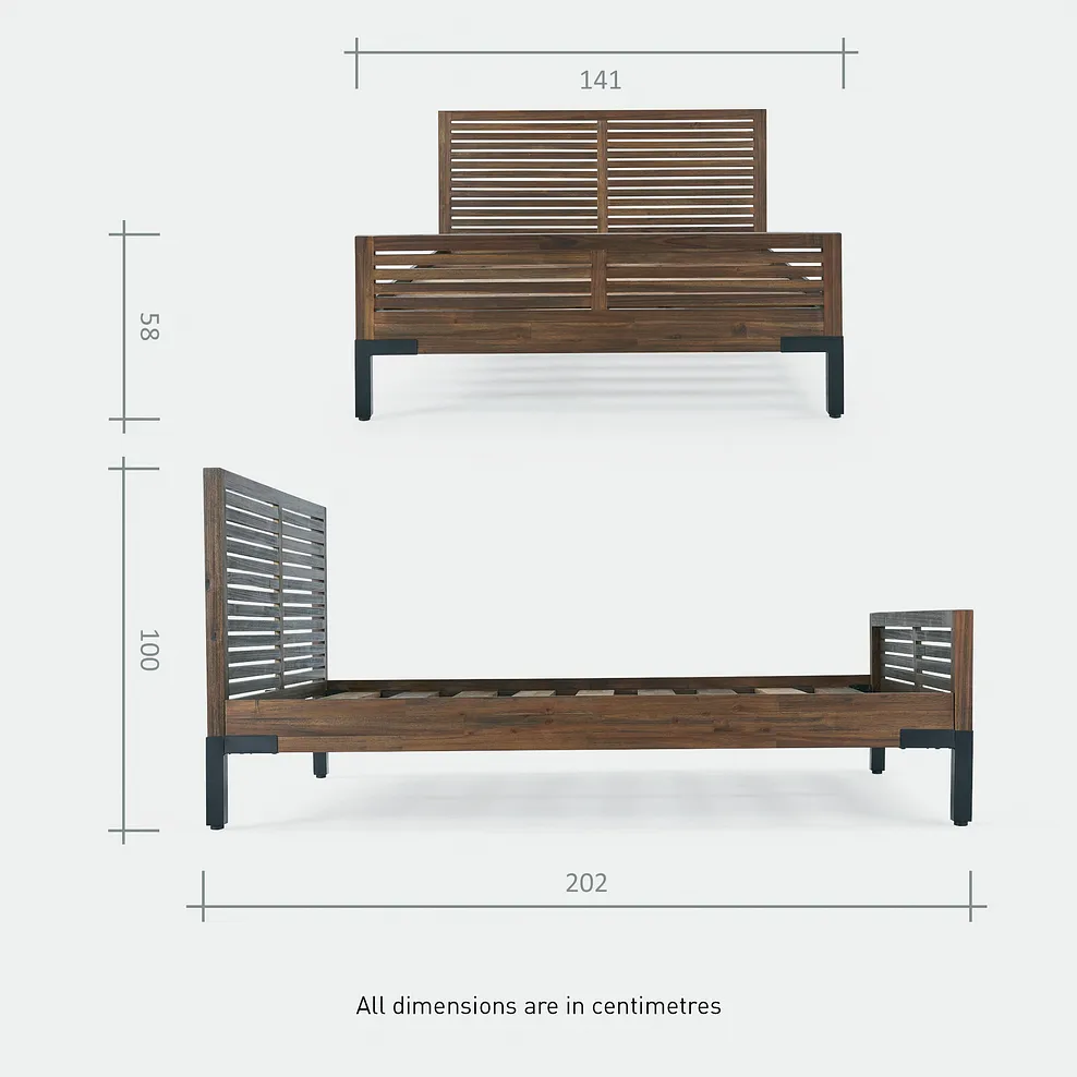 DETROIT Double Bed Solid Hardwood & Metal