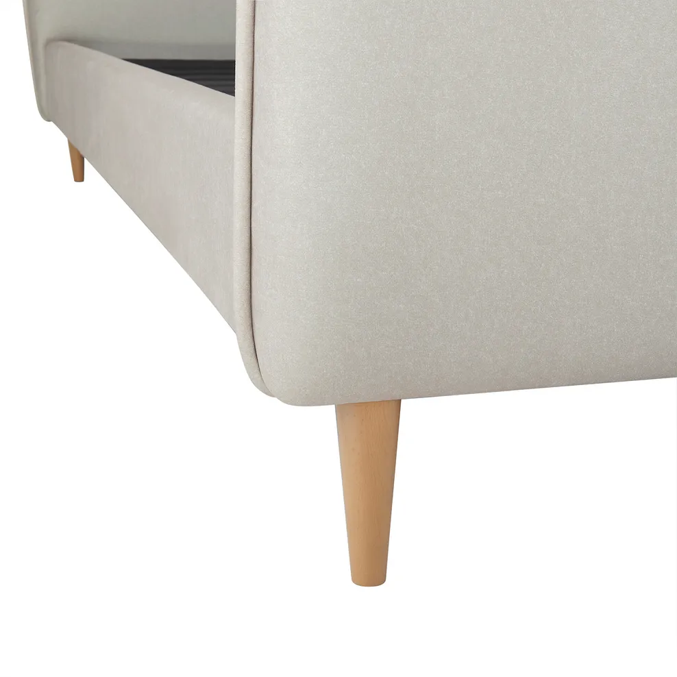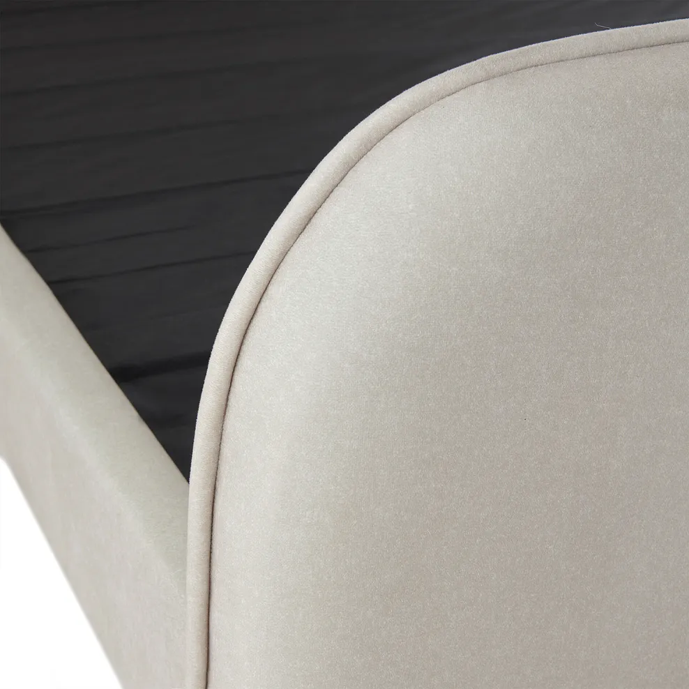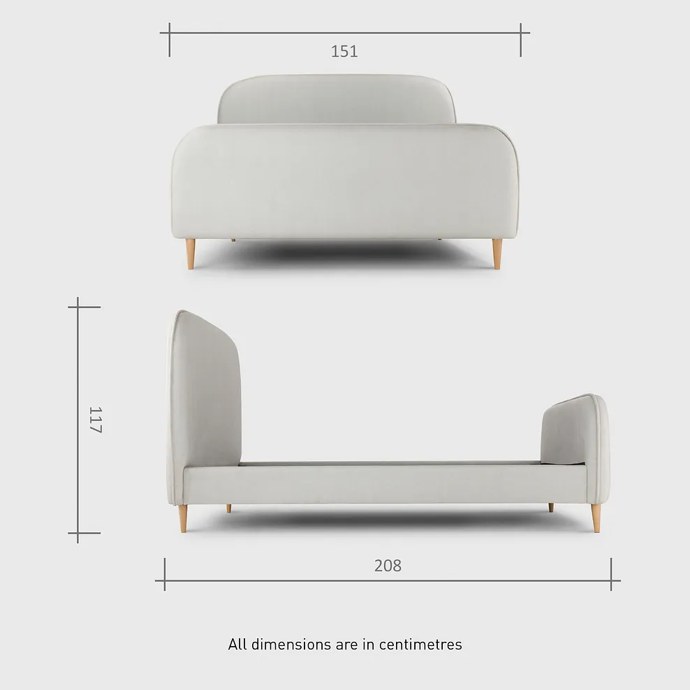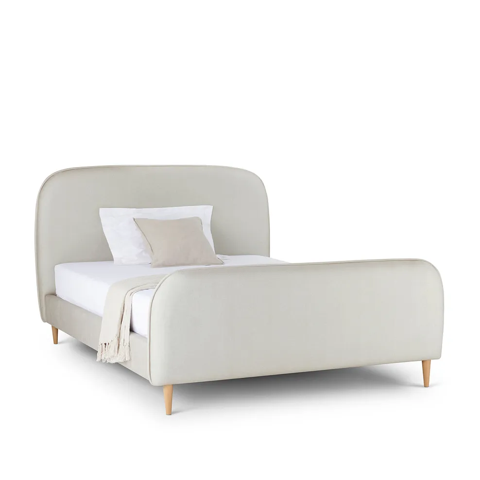 Featuring a chic curved headboard, the exclusive design is upholstered in a durable yet soft-touch fabric. Tapered beech feet perfectly match the Durham cabinetry range and create visual points of interest.