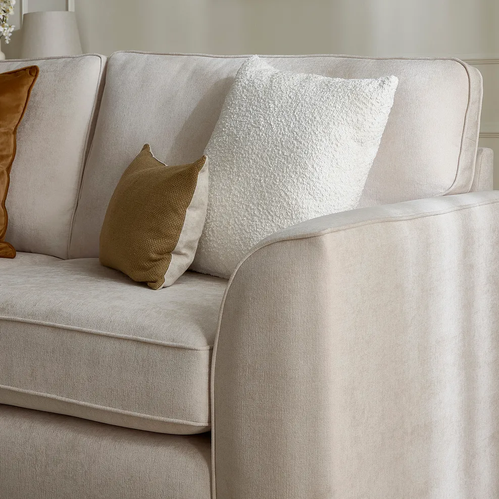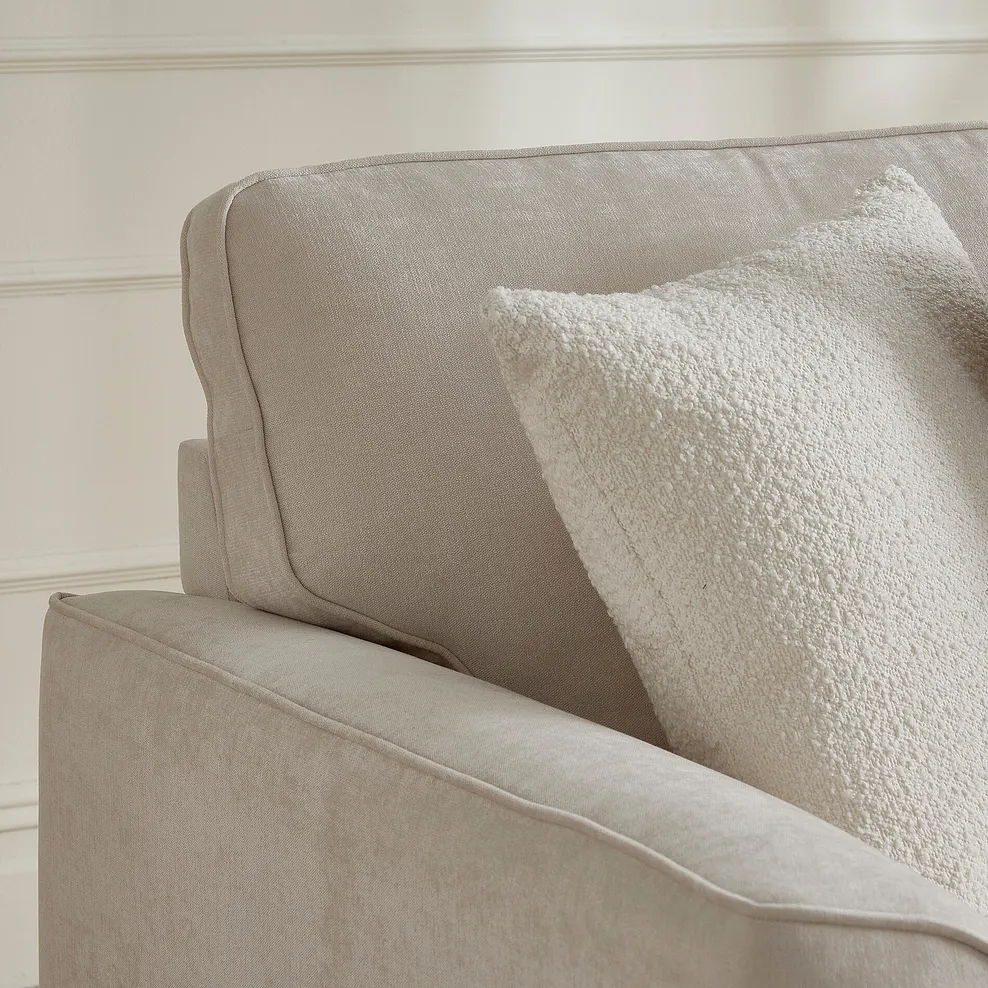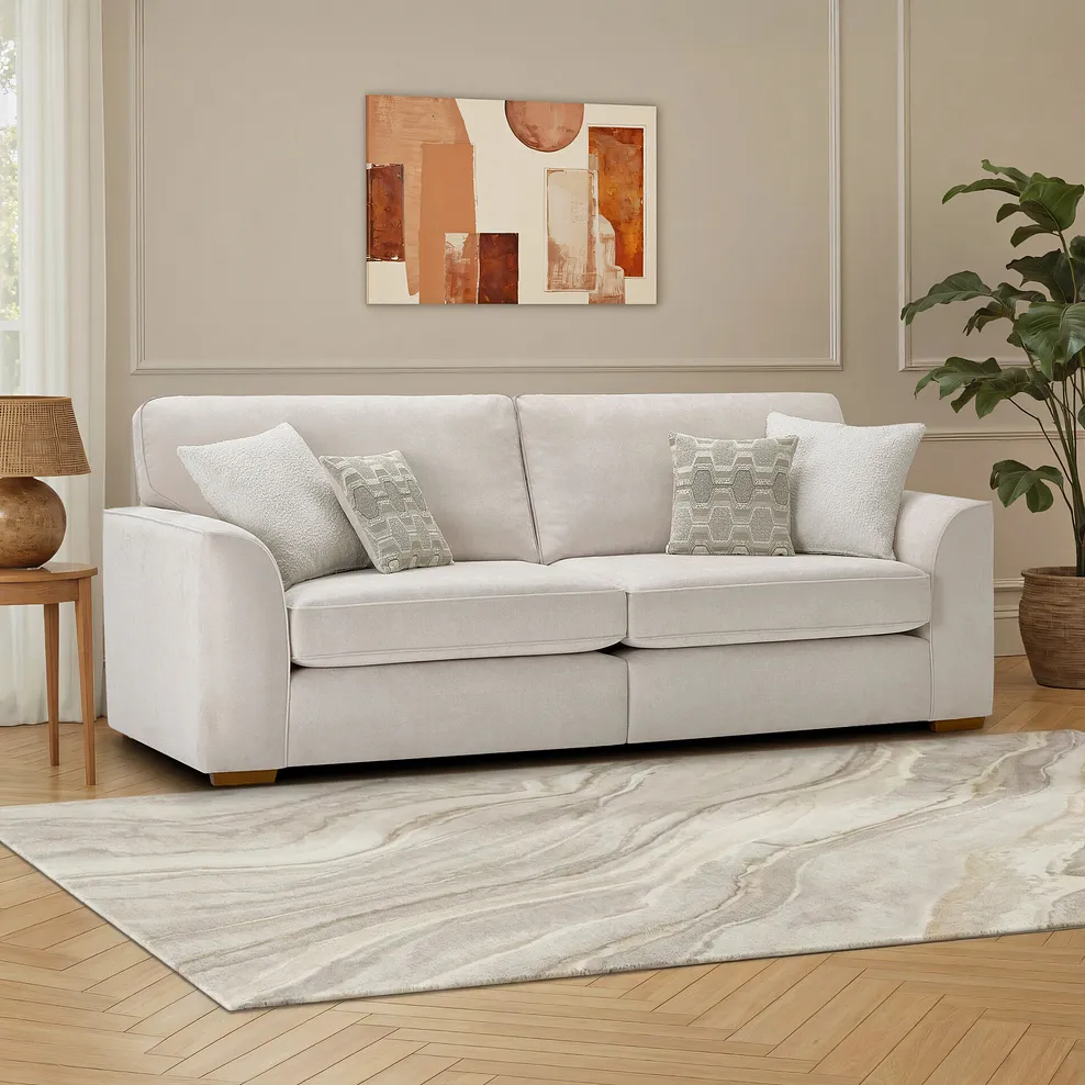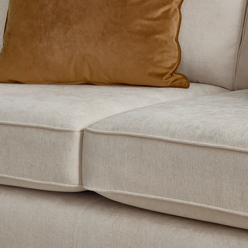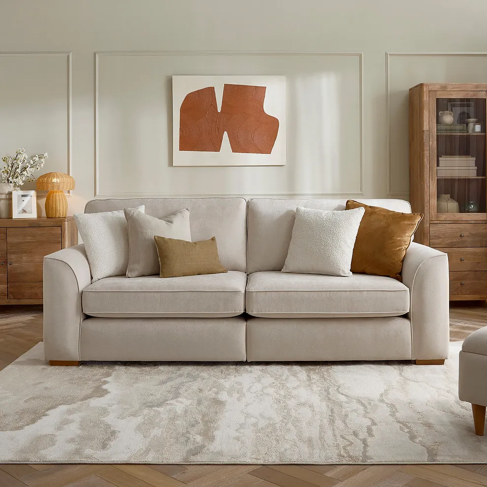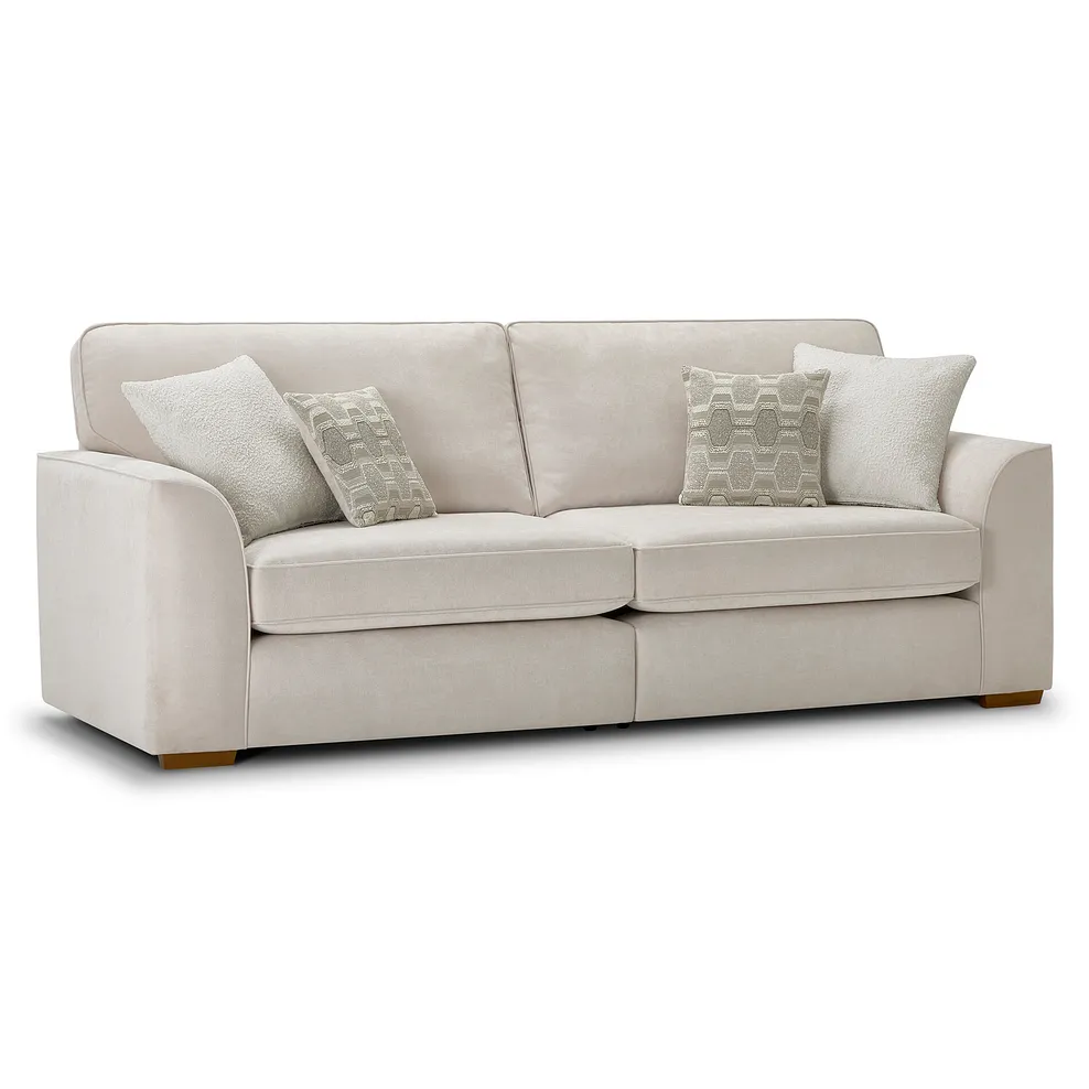 Designed for sociable living, our Eastley 4 seater sofa offers an indulgent seating experience for the whole family. Upholstered in soft-touch Limoge Beige fabric, its spacious design invites you to sink into generously padded cushions for the ultimate relaxation experience. Finished with beautifully plump scatter cushions, for the perfect blend of comfort and character.