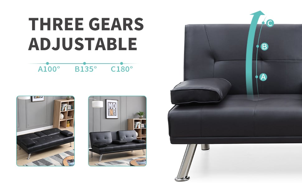 Angle AdjustmentConstructed of 100,135 and 180 degrees 3-position adjust the most comfortable angle which will flexibly convert into a sofa or bed,allow it to be positioned in upright or flat