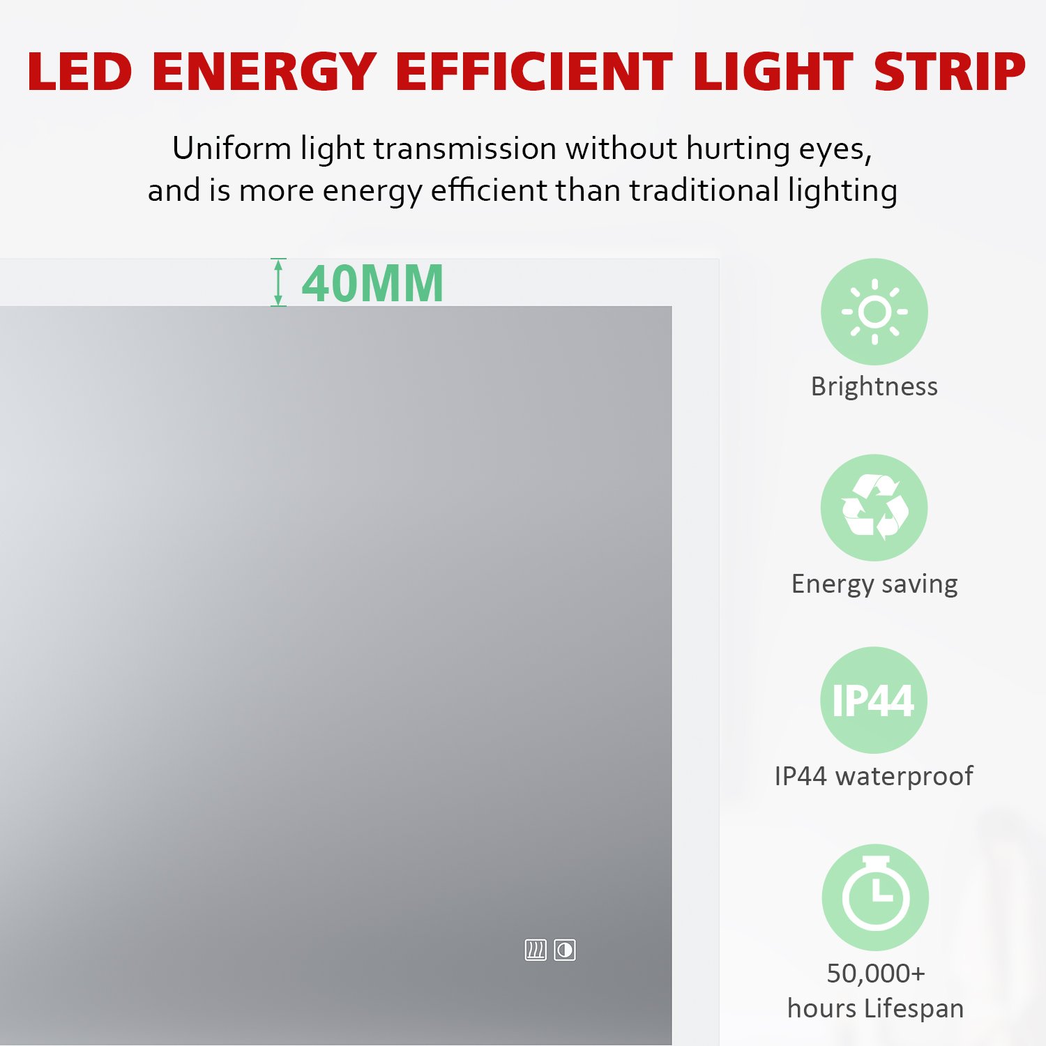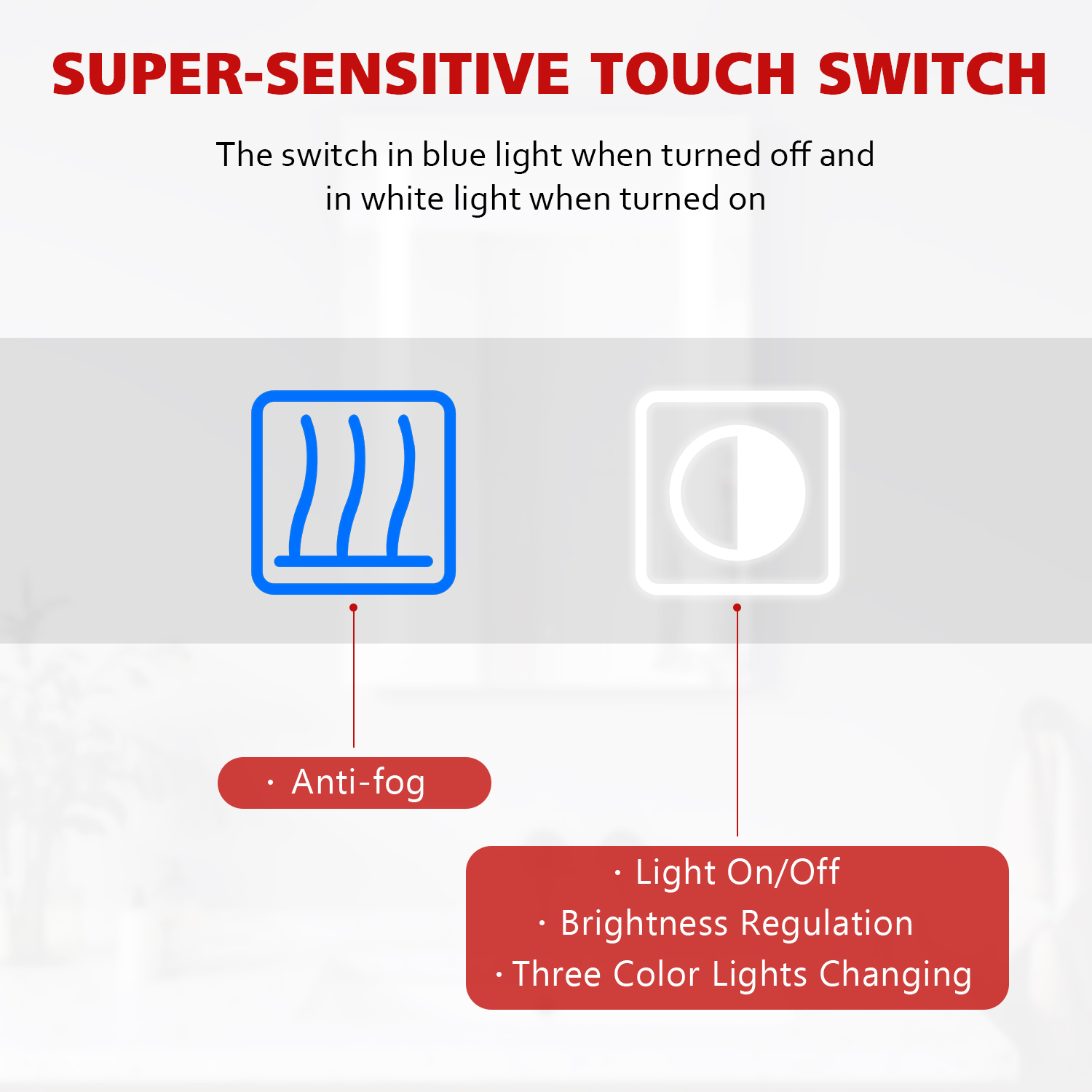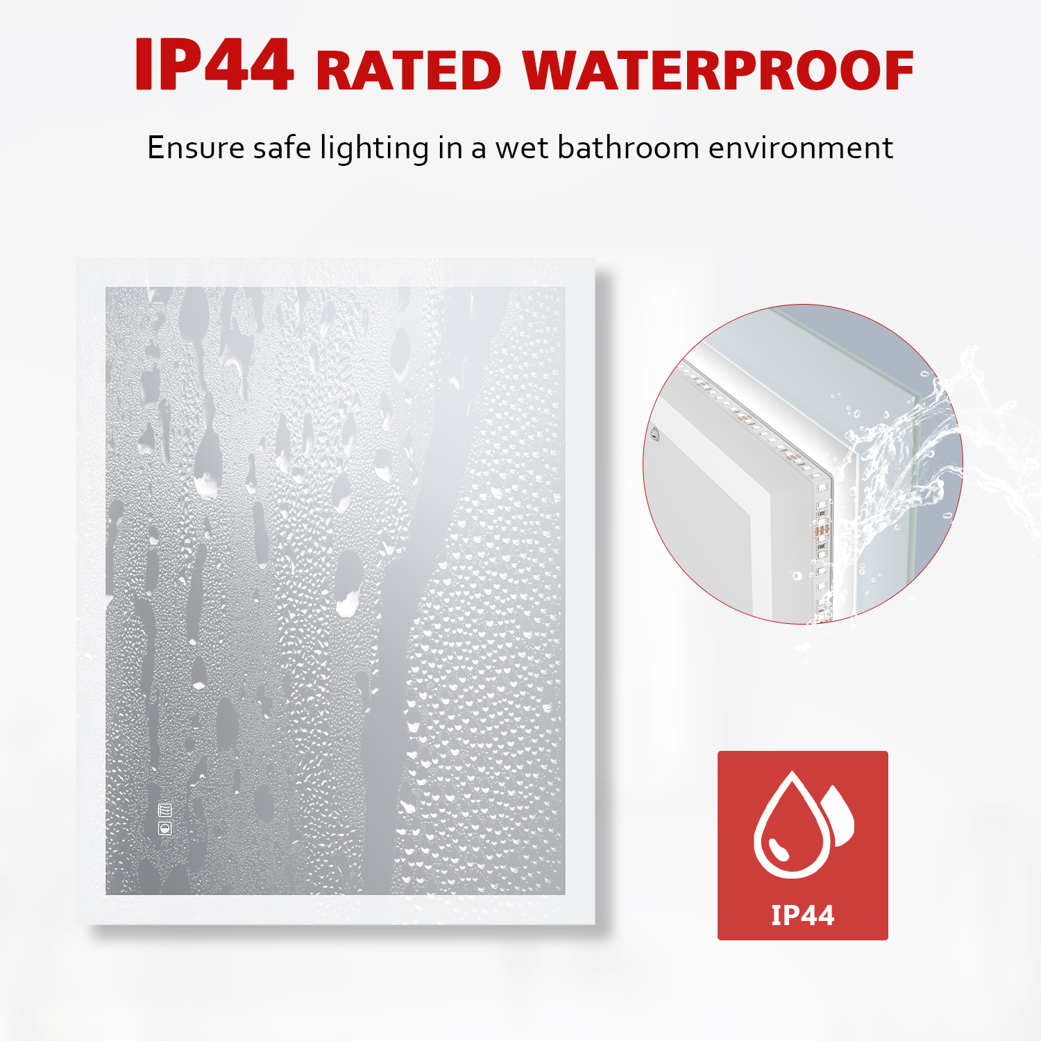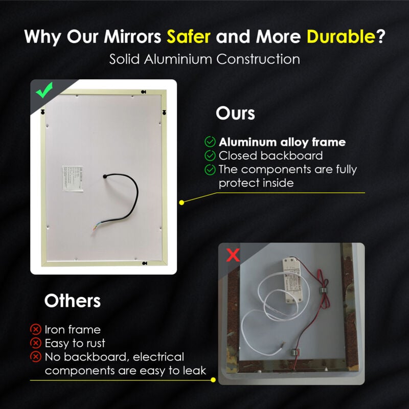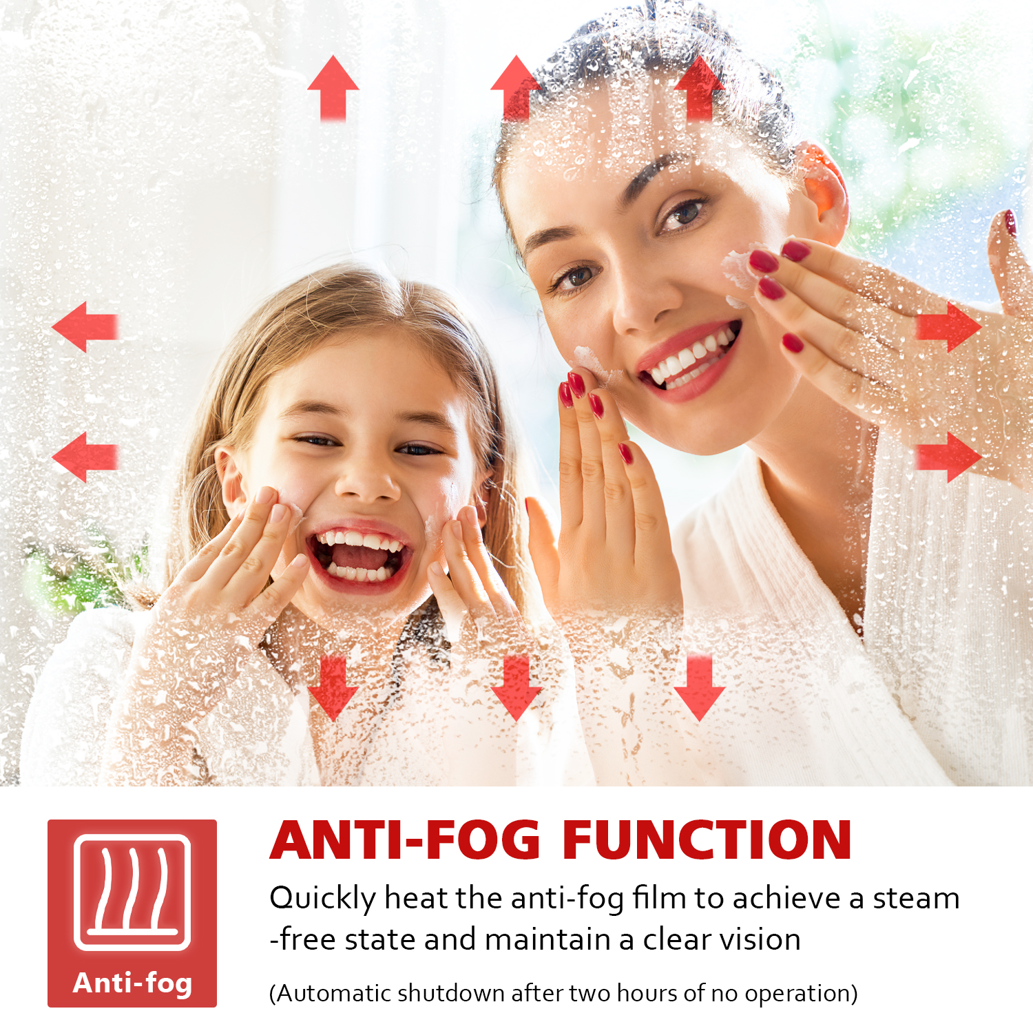 ÂAnti-fog & Waterproof‘ – The bathroom mirror cabinet with lights is IP44 waterproof with defogging function. No need to wipe the LED mirror after a shower anymore, it will be clearly reflected at all times.