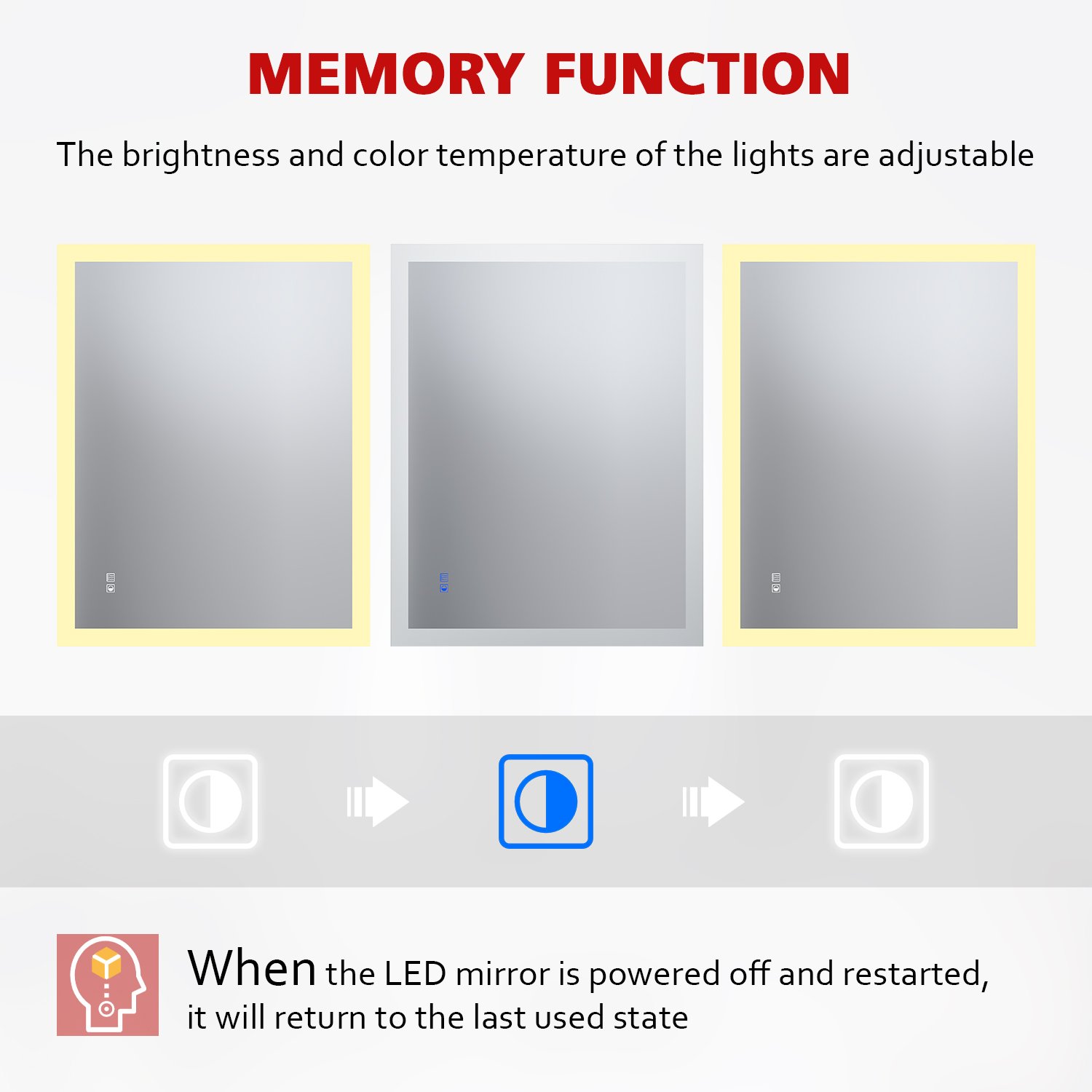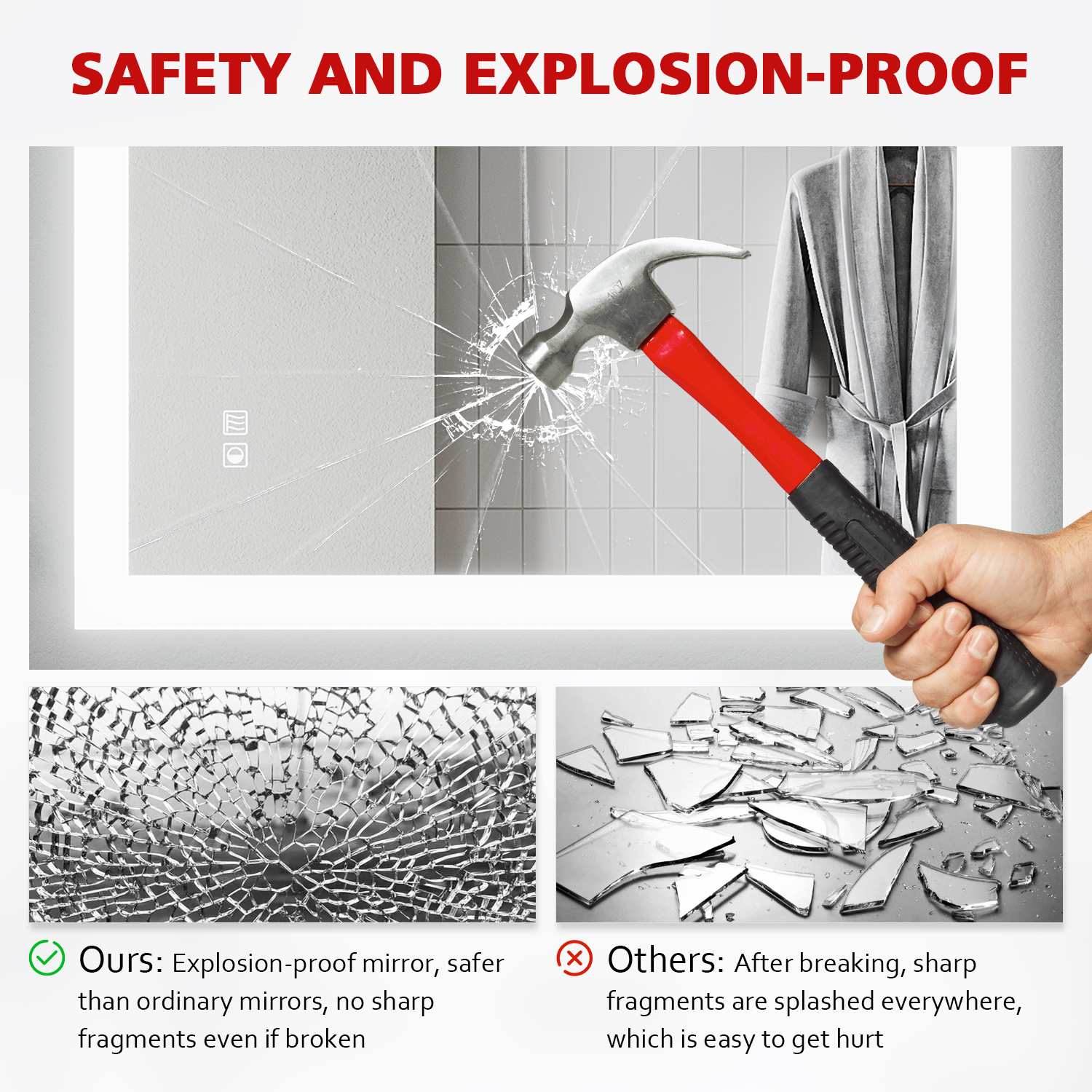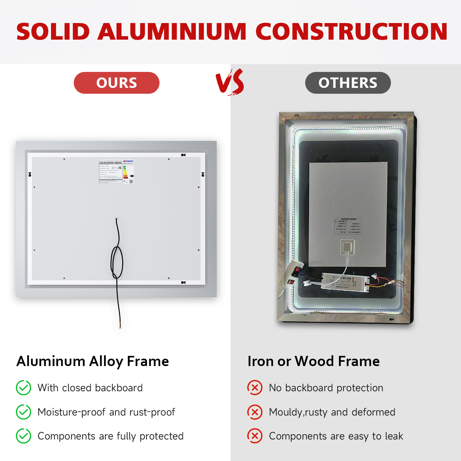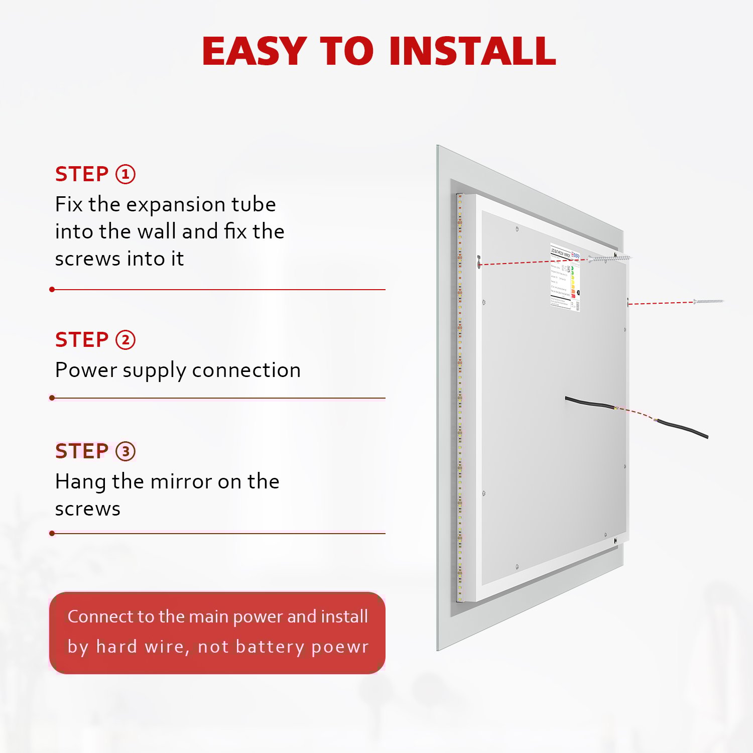 ÂAnti-fog & Waterproof‘ – The bathroom mirror cabinet with lights is IP44 waterproof with defogging function. No need to wipe the LED mirror after a shower anymore, it will be clearly reflected at all times.