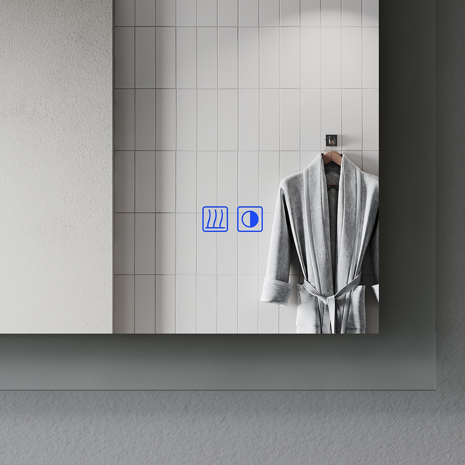 ÂMemory function‘ – Say goodbye to having to adjust the brightness and colour temperature every time you use the mirror. Our LED mirrors have an impressive memory, including brightness, colour temperature and power failure memory.