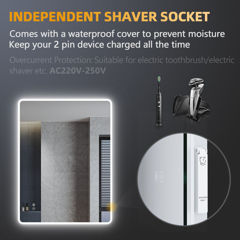 ÂAnti-fog & Waterproof‘ – The bathroom mirror cabinet with lights is IP44 waterproof with defogging function. No need to wipe the LED mirror after a shower anymore, it will be clearly reflected at all times.