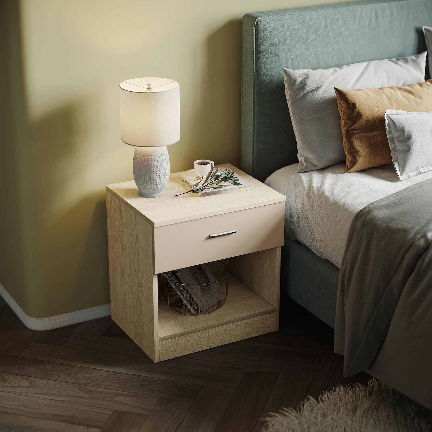 Be the first to review “ELEGANT Cream/Oak Modern High Gloss Bedside Cabinet Stand Storage Shelf with Bin Drawer for Bedroom, Livingroom and Home Storage Organizer”