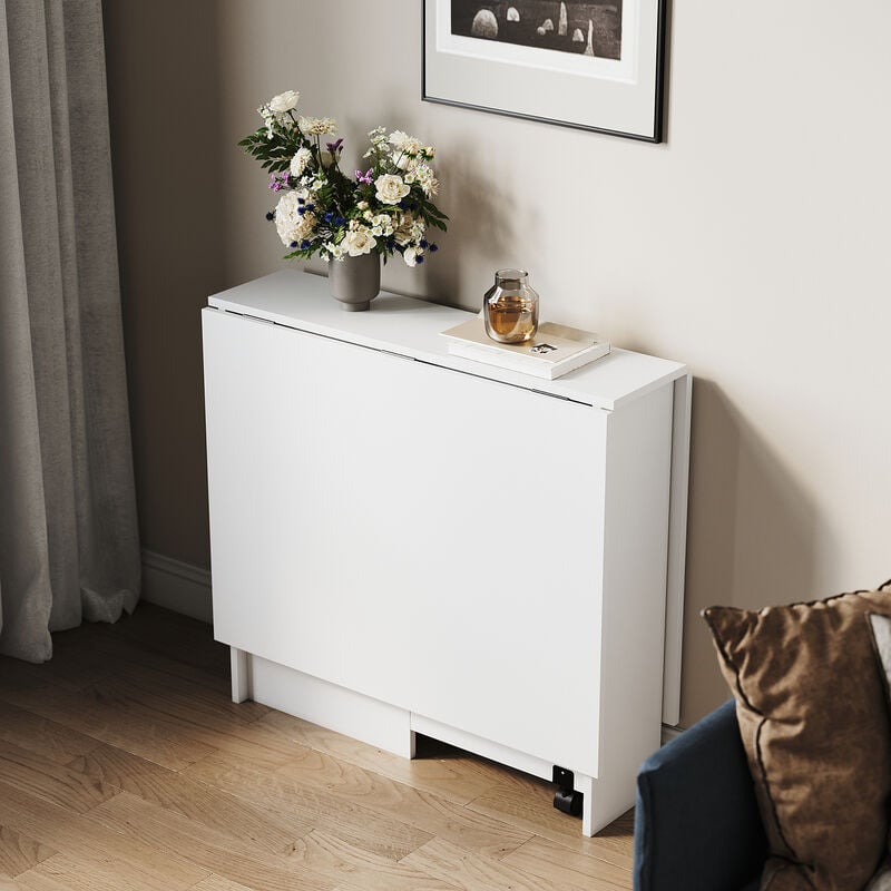 ELEGANT Folding Dining Table Multifunctional Mobile Kitchen Table Space Saving Table with 2 Wheels, White 140x80mm