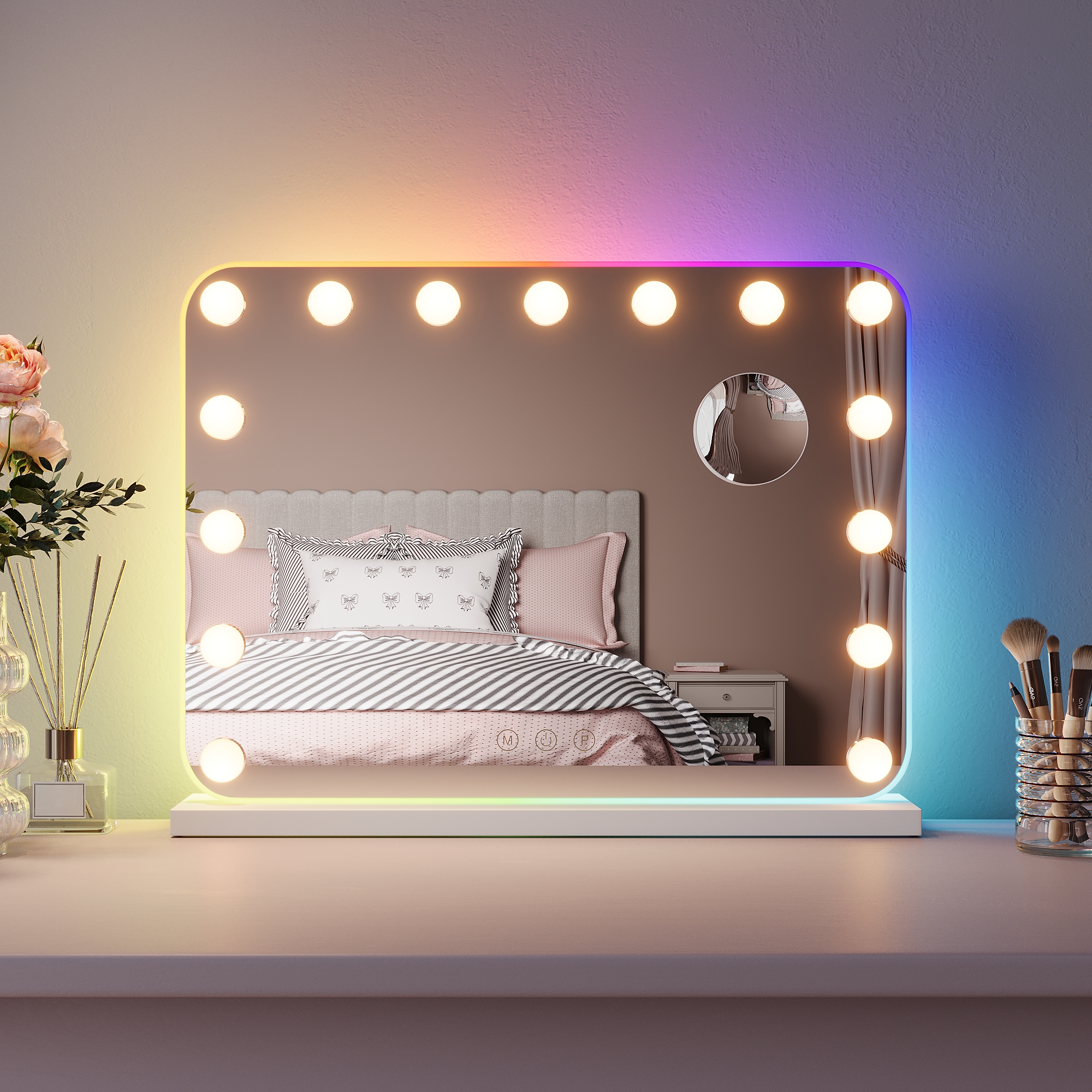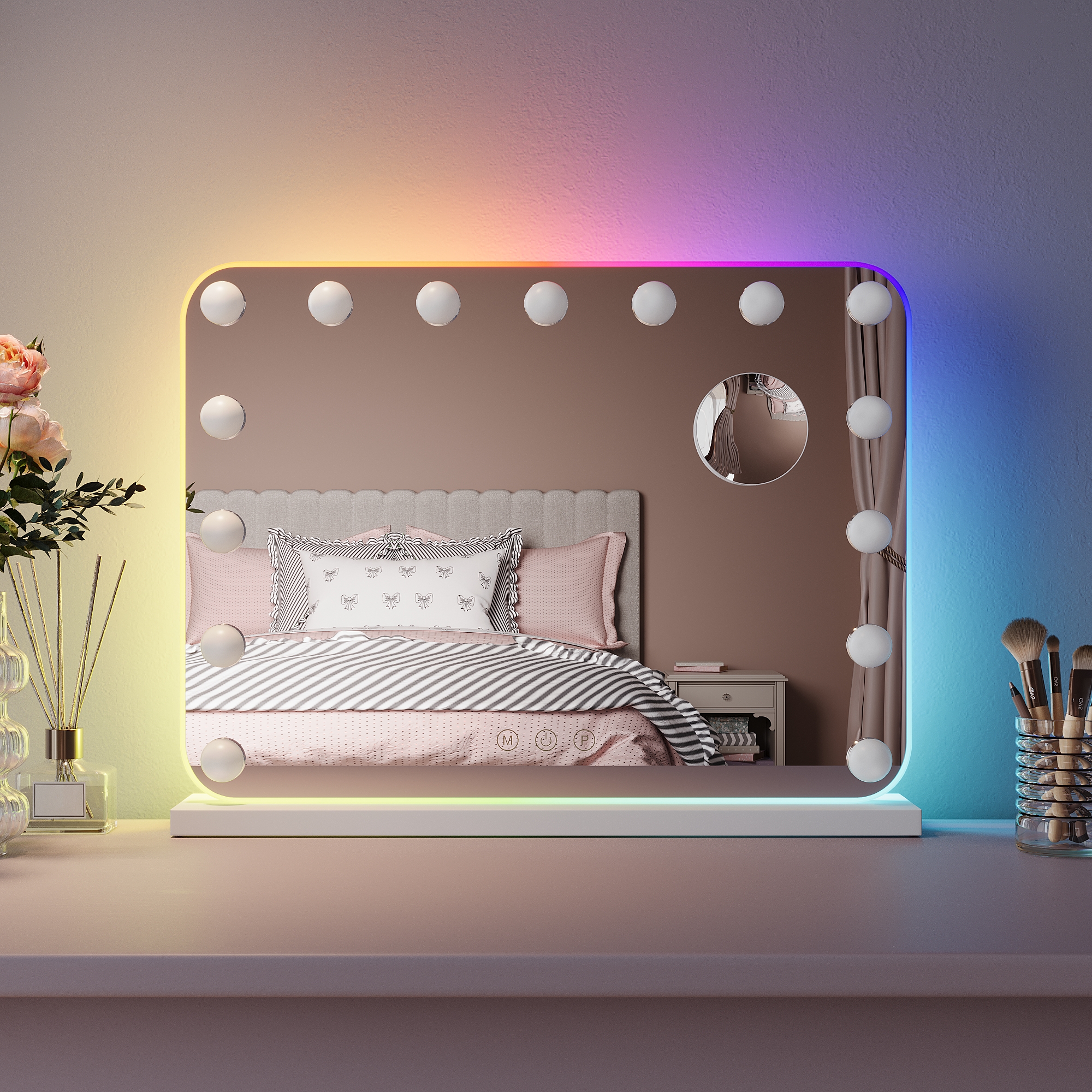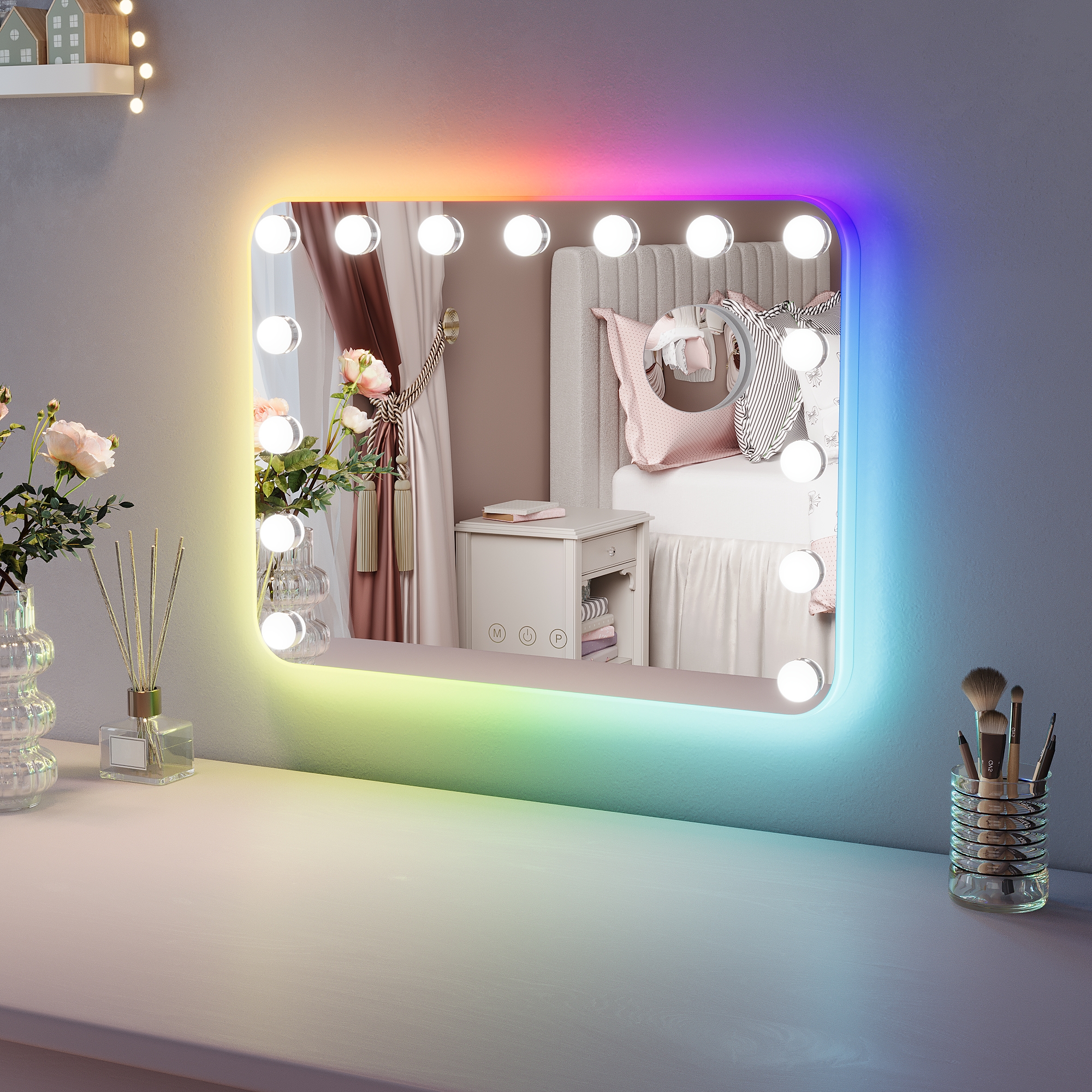 It™s not easy to get that ideal natural lighting while doing your makeup, or shaving, or just cleansing your skin, but vanity mirrors changed the game. Those light bulbs around the mirror are not only for decoration aesthetics, but they bring a more natural view of what you are doing and how you will look under sunlight. Fun fact, mirrors with these bulbs are called Hollywood mirrors “ it all makes sense now, right? The real reason is that all the dressing rooms in theaters or movie sets have at least one. Who wouldn™t feel like a real movie star with these? Anyways, you can change the lights to any mode you want, by dimming them or putting on max brightness. You can also choose their colors and create the ambiance you™ve always wanted.