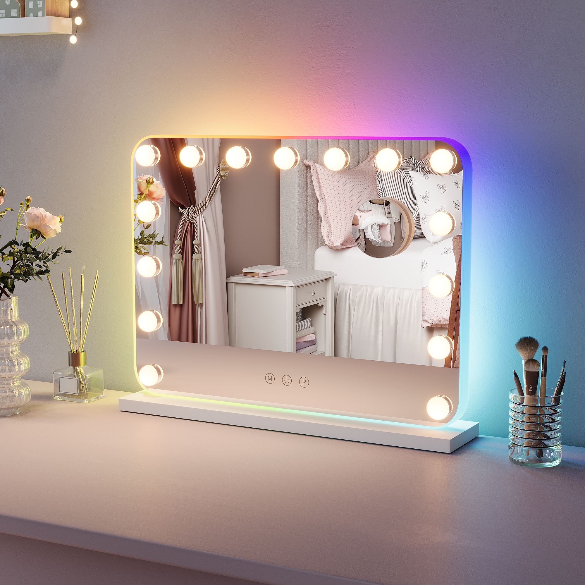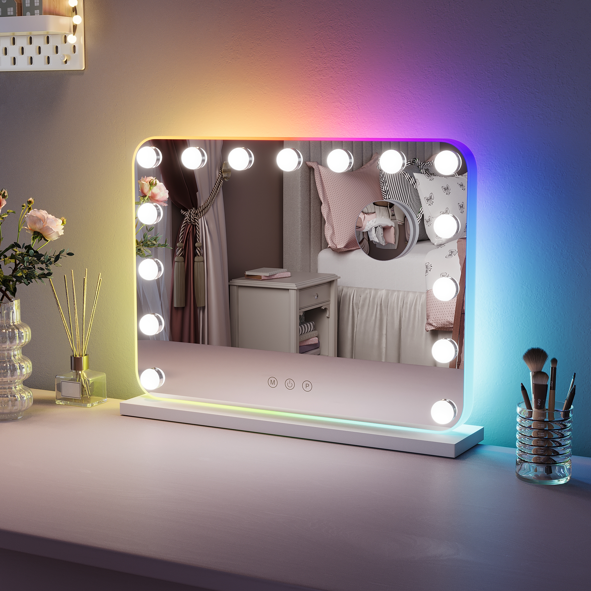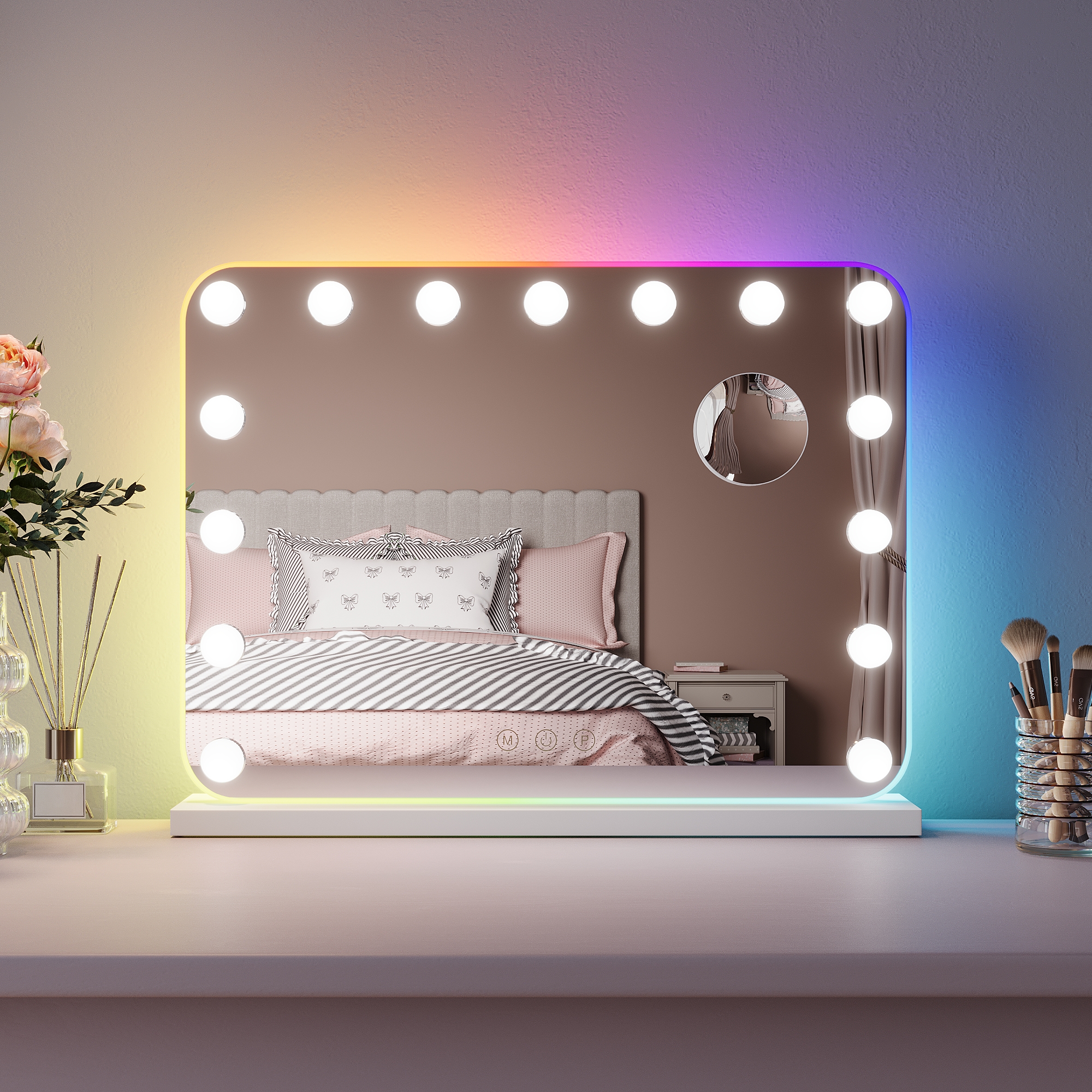 It™s not easy to get that ideal natural lighting while doing your makeup, or shaving, or just cleansing your skin, but vanity mirrors changed the game. Those light bulbs around the mirror are not only for decoration aesthetics, but they bring a more natural view of what you are doing and how you will look under sunlight. Fun fact, mirrors with these bulbs are called Hollywood mirrors “ it all makes sense now, right? The real reason is that all the dressing rooms in theaters or movie sets have at least one. Who wouldn™t feel like a real movie star with these? Anyways, you can change the lights to any mode you want, by dimming them or putting on max brightness. You can also choose their colors and create the ambiance you™ve always wanted.