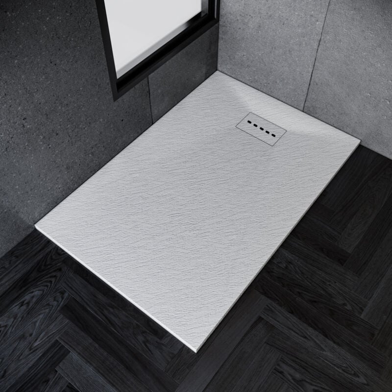 This shower tray is made from a patented mixture of resin and filler, providing super strength and a slate textured finish. It features an antibacterial and anti-slip gel coating for a soft, natural touch. The slip-resistant design ensures safety, while the grade 3 anti-slip surface is waterproof and highly resistant to impact and chemicals. Its modern design includes hidden drainage, making it suitable for any bathroom style. The shower tray can be easily cut to fit your installation needs.