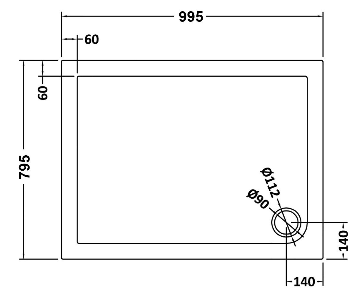 • 1000 x 800 x 40mm Rectangular shower tray (W x D x H)