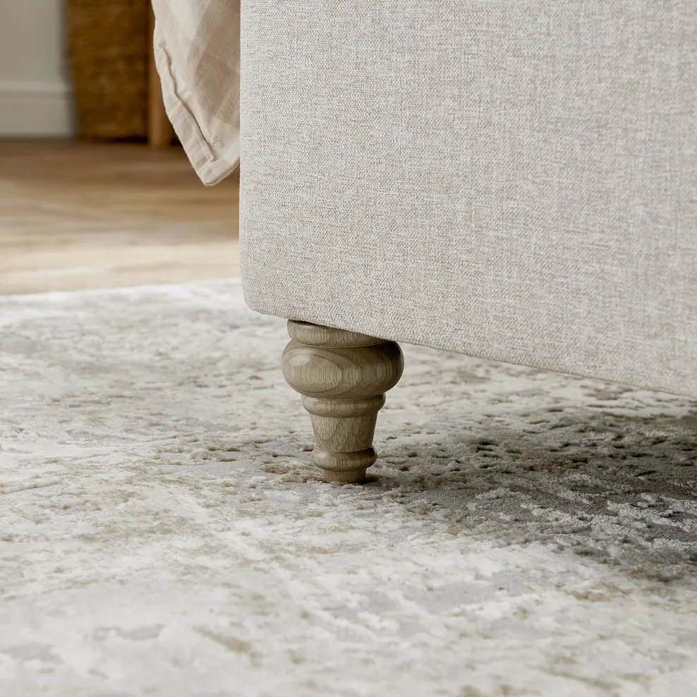 The elegantly curved headboard and light oak turned feet complement its understated look to make a subtle statement. The bed is upholstered in a hard-wearing cotton-effect fabric and is available in two beautifully neutral colours that create a serene backdrop for bedtime bliss.