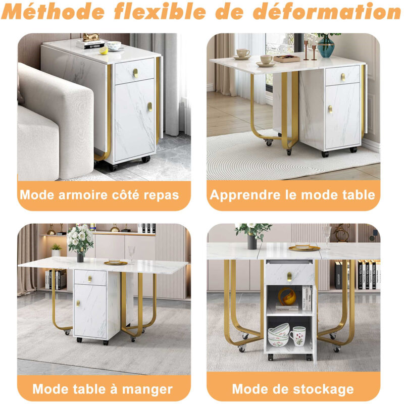 - Flexible and customisable: Flexible folding and extending, three different modes for different needs. This folding dining table not only impresses with its stylish appearance and versatility, but can also be flexibly adapted to meet your different needs. Whether as a desk, dining table or storage cabinet, it can be effortlessly customised.