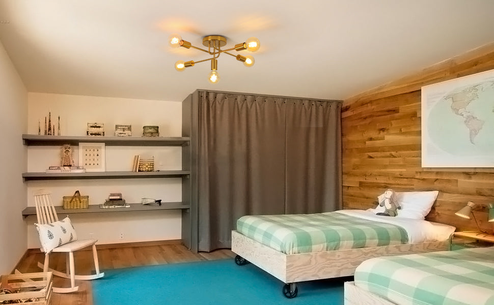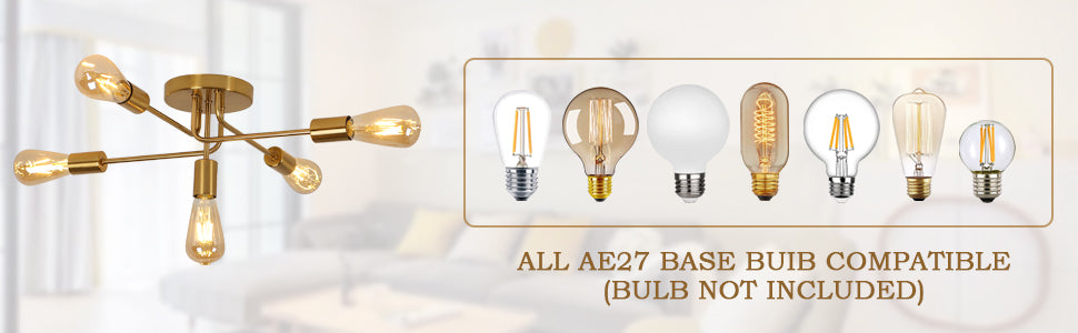 Unique design: 5-light E27 ceiling lamp has a unique curved design for the lamp arm, with elegant and smooth lines of the lamp body, it is a combination of retro and style, providing excellent lighting and decoration for the room.