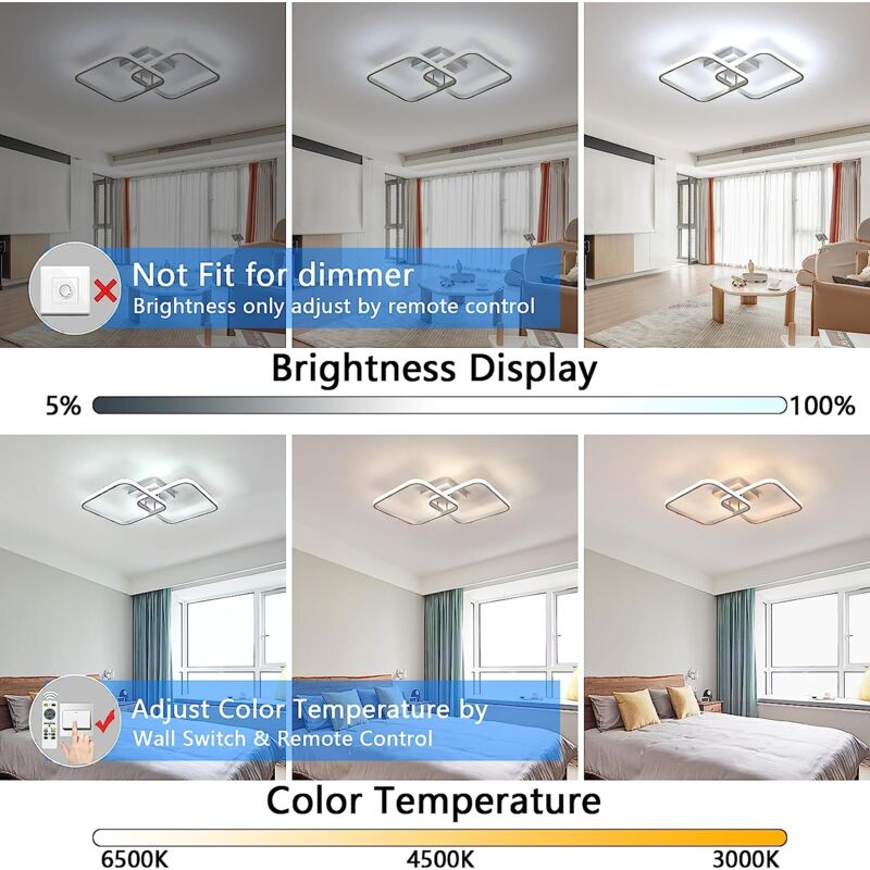 [Specifications] LED ceiling light of the dimension: 69*37*10cm. The color temperature can be changed from 3000K to 6500K and the brightness can be adjusted continuously from 5 % to 100 % using the remote control. This ceiling lamp is not available for domestic use with light variators.