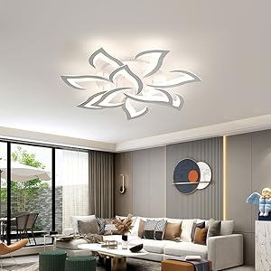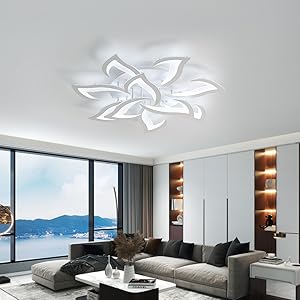 Flower-shaped ceiling light, modern and minimalist style. With its luminous petals, it opens on the ceiling like a chandelier, creating a soft and warm atmosphere with its integrated 84W LED source.