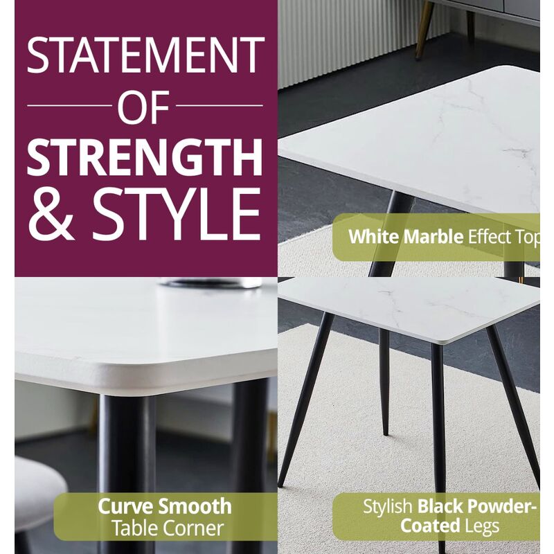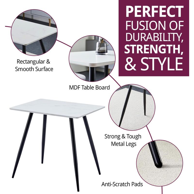 This small table catches the eye straightaway. The marble effect table-top is simply stunning and is the perfect complement for the sturdy black powder-coated legs. This small space-saving table is perfect for a dining for two. It maintains a relatively slim profile and can be comfortably placed into any kitchen. With its distinctive marble effect design, this table can serve various purposes around the home.
