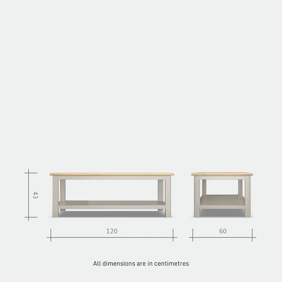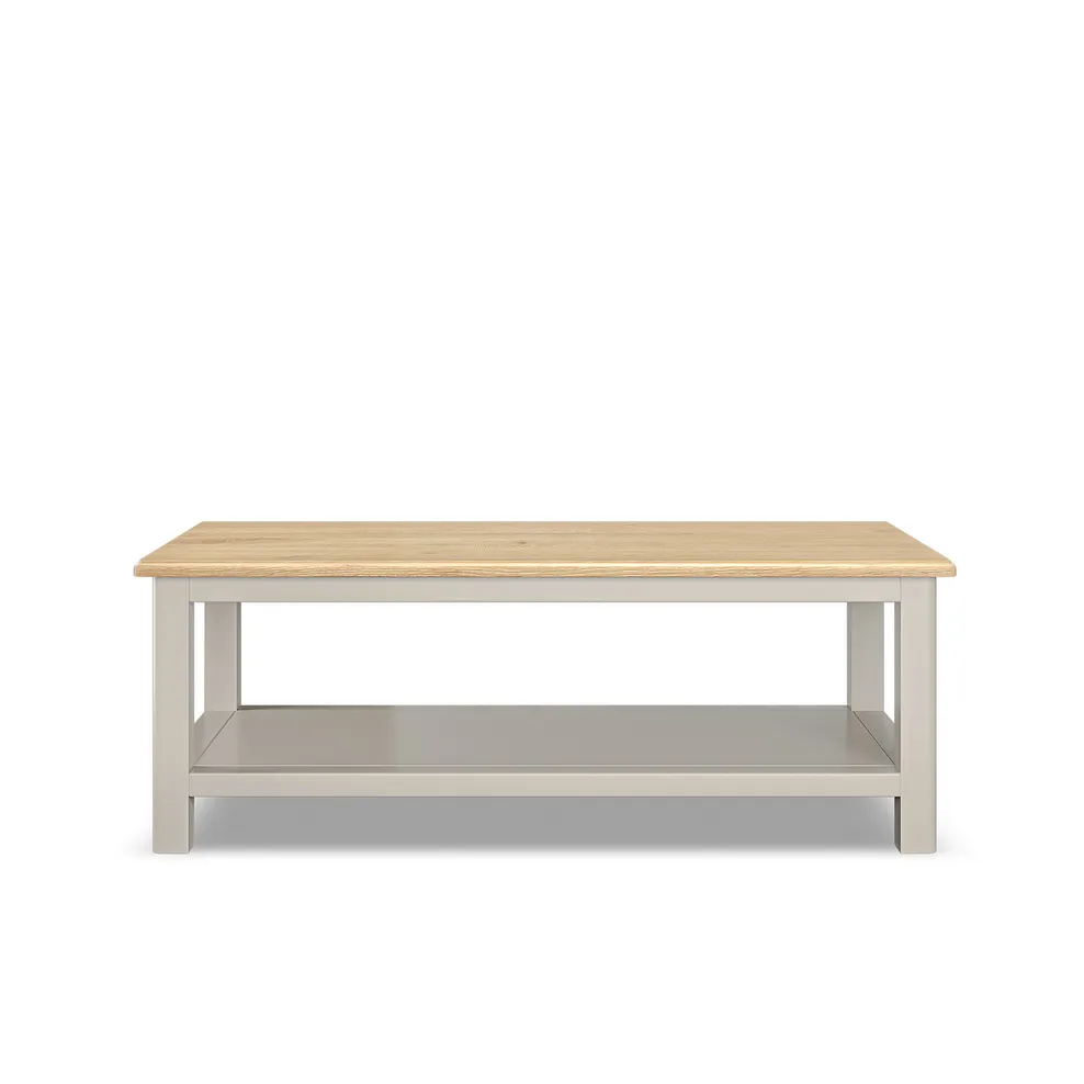 Make a classic feature in your living room with our Henley oak and painted acacia coffee table. The warm stone finish complements the natural oak top to offer an elegant spot to rest your favourite drinks and snacks.