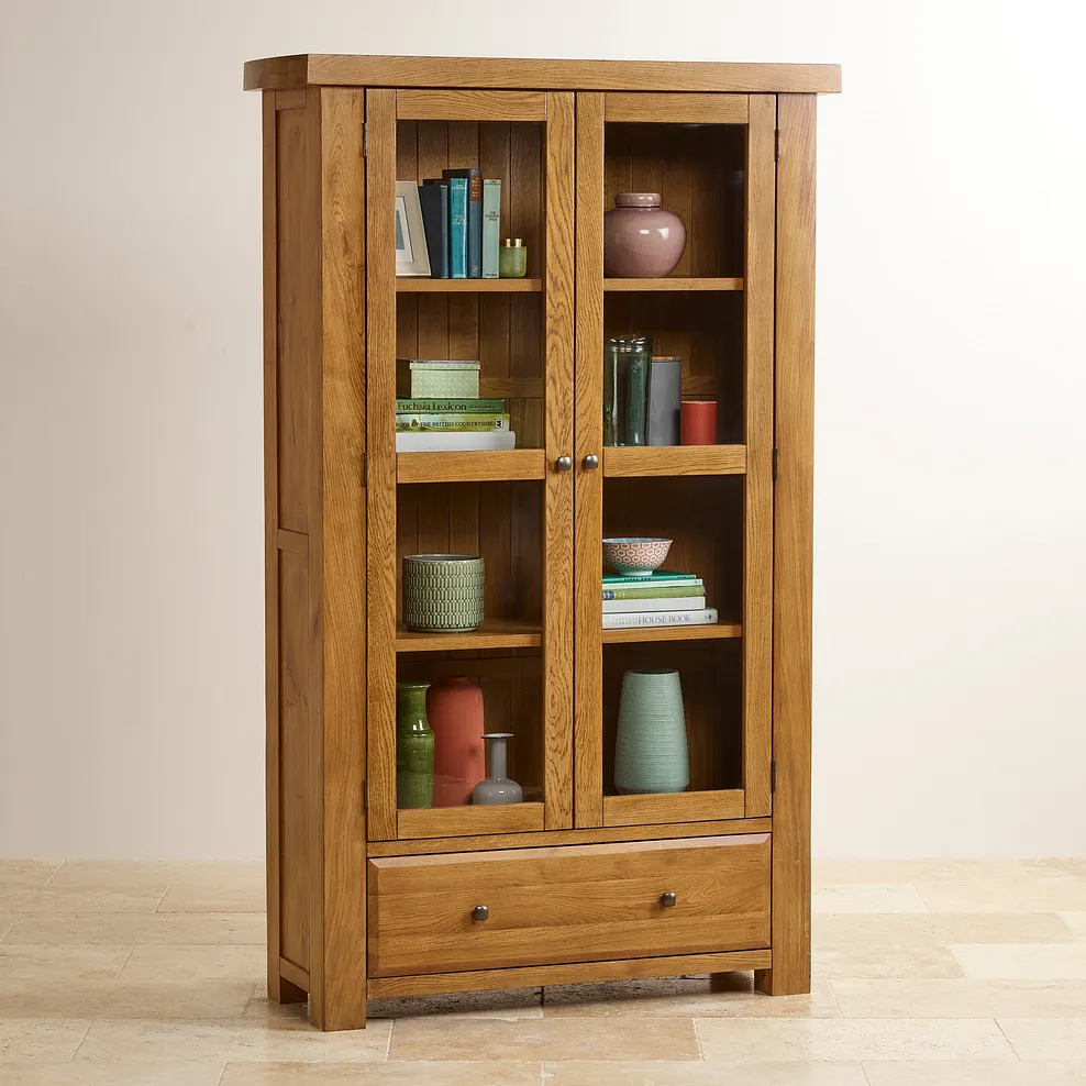 HERCULES Display Cabinet Rustic Solid Oak
