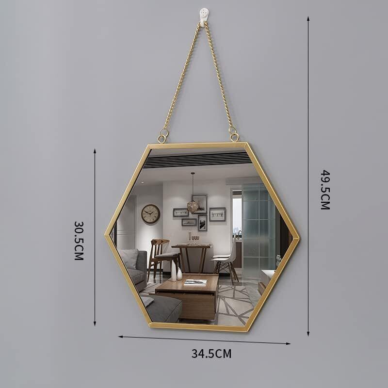 It is not only a practical mirror, but also a wall decoration, adding a home atmosphere. Beautiful and practical, suitable for various decoration styles. The hexagonal shape breaks the convention, and the light and luxurious gold metal style instantly attracts visual attention.